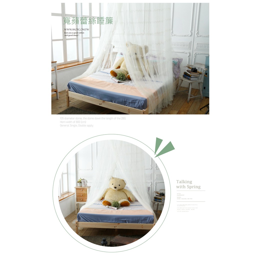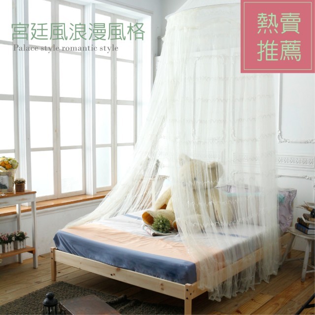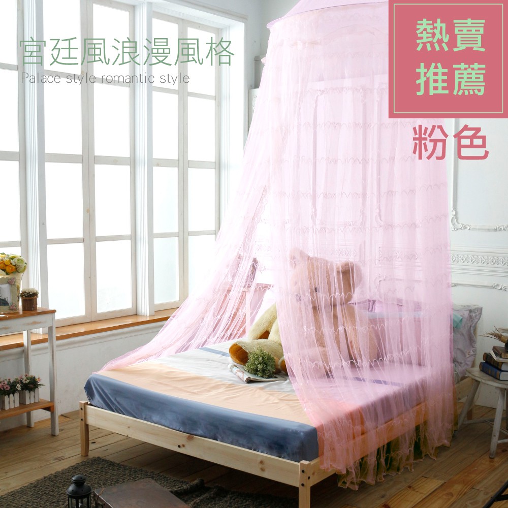 歐式公主風-寬蘋蕾絲睡簾 蚊帳/可折疊(米黃/粉紅)