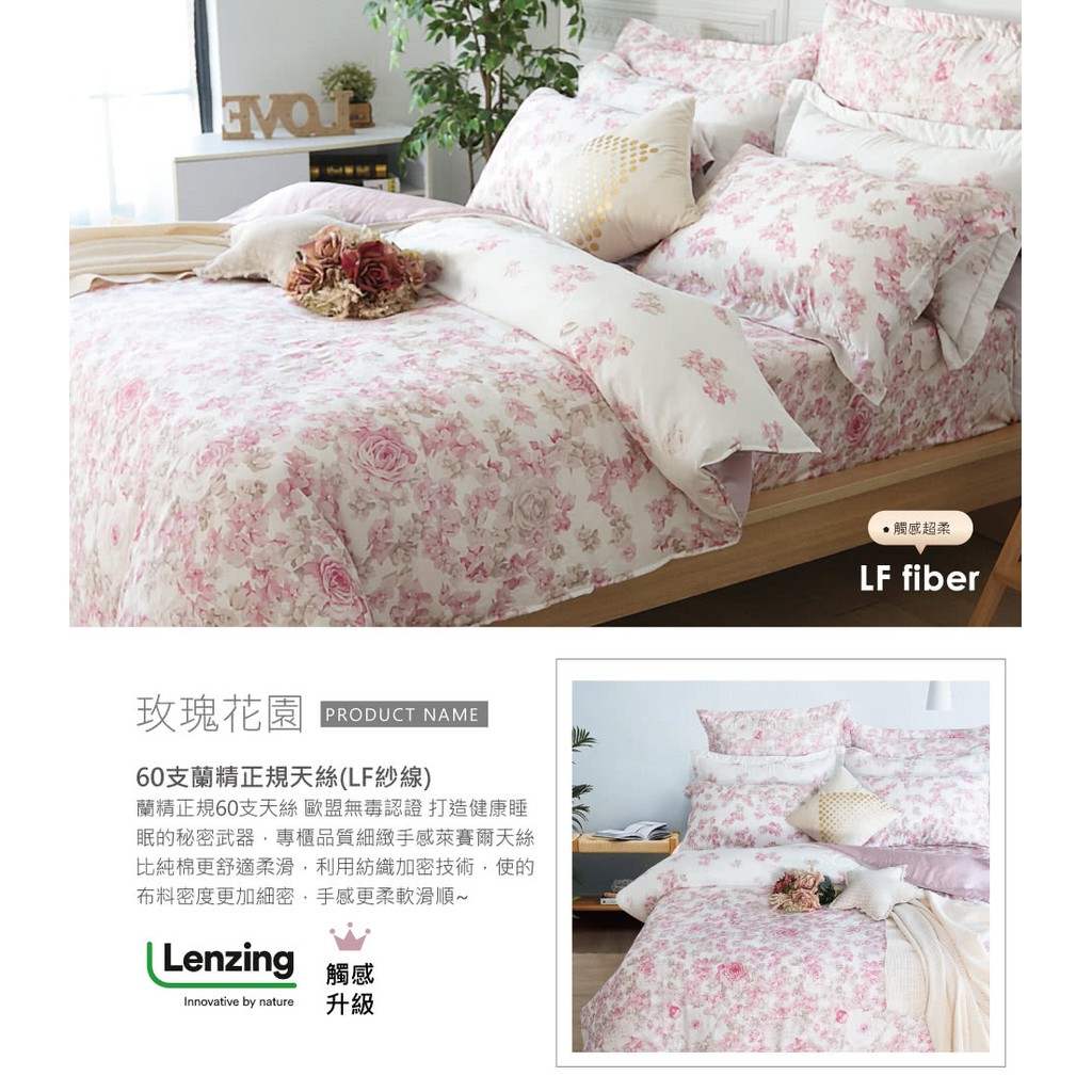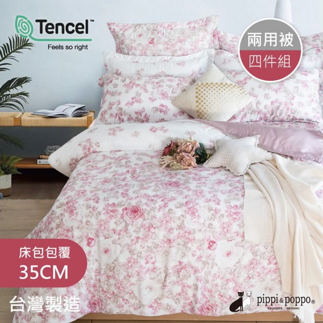 【pippi & poppo】60支頂級天絲 觸感升級 床包兩用被四件組 5尺/6尺/7尺 (玫瑰花園)