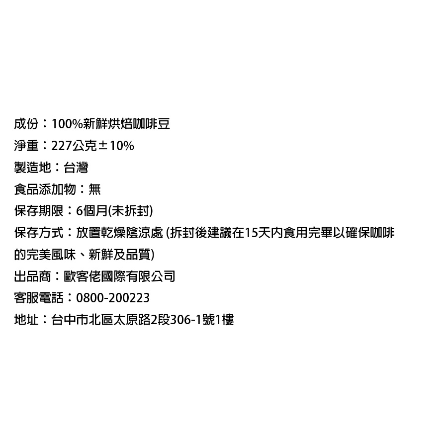 【歐客佬】哥斯大黎加 塔拉珠多塔合作社 丸豆 水洗 咖啡豆 (半磅) 中深烘焙 (11020371)