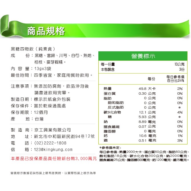 【京工】黑糖四物飲 (3入) - 京工蔬菜湯養生館