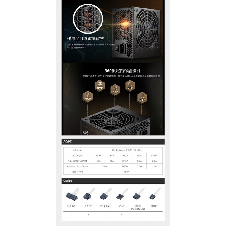 【全漢 FSP】聖武士 450W 銅牌80+ 電源供應器