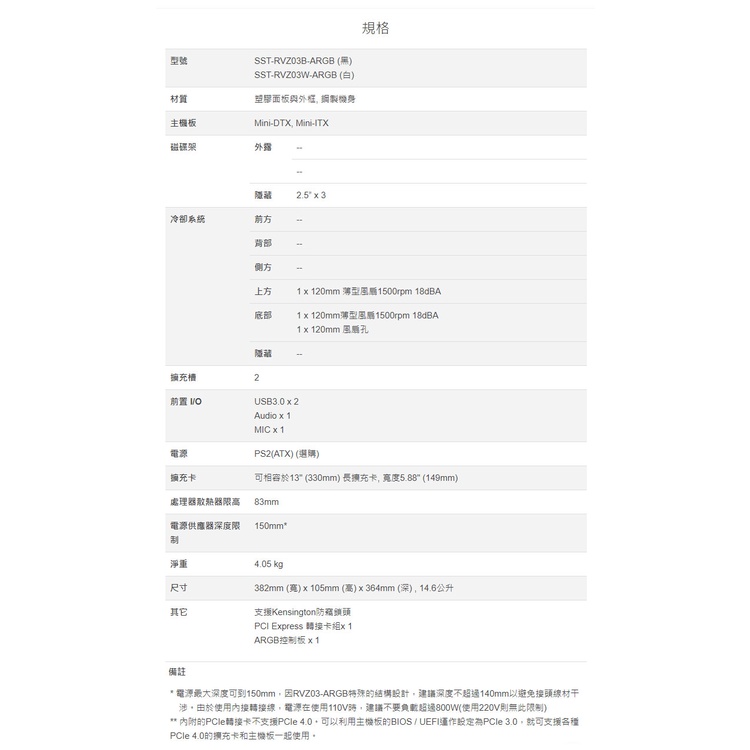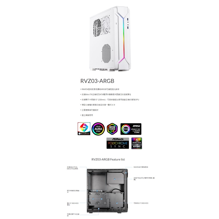 【銀欣】RVZ03-ARGB RAVEN風格 薄型化機箱機殼-白