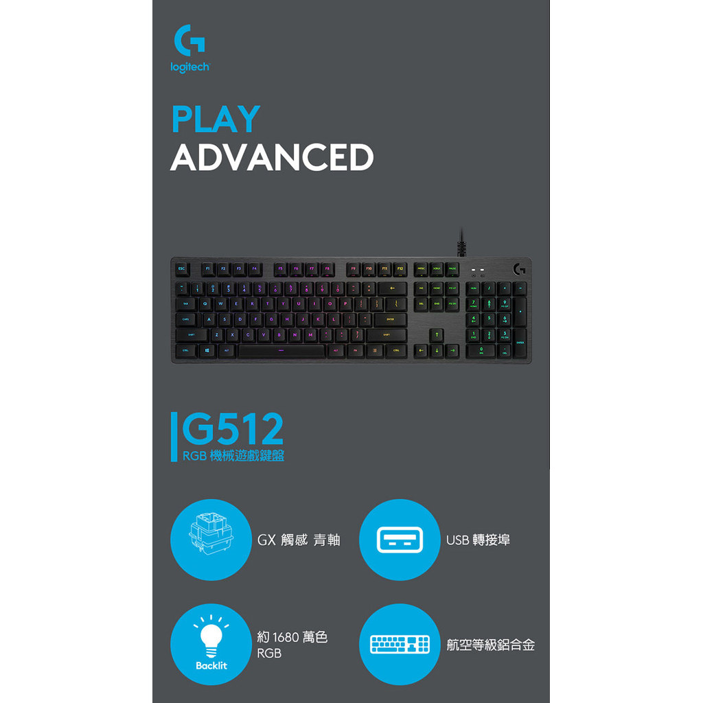 【Logitech 羅技】G512 RGB 機械遊戲鍵盤|青軸