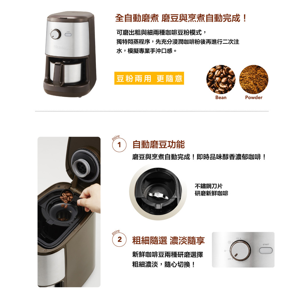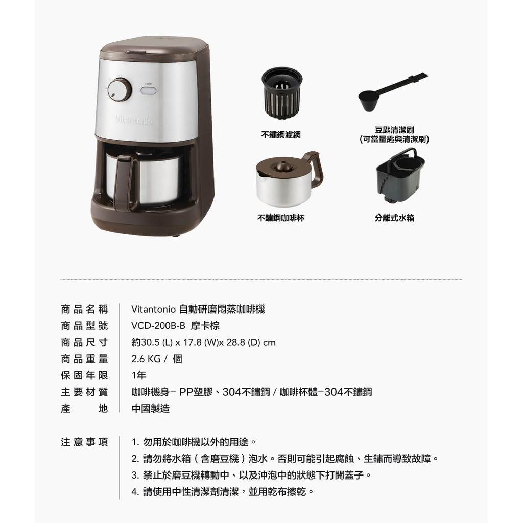 【Vitantonio】全自動研磨咖啡機(摩卡棕)