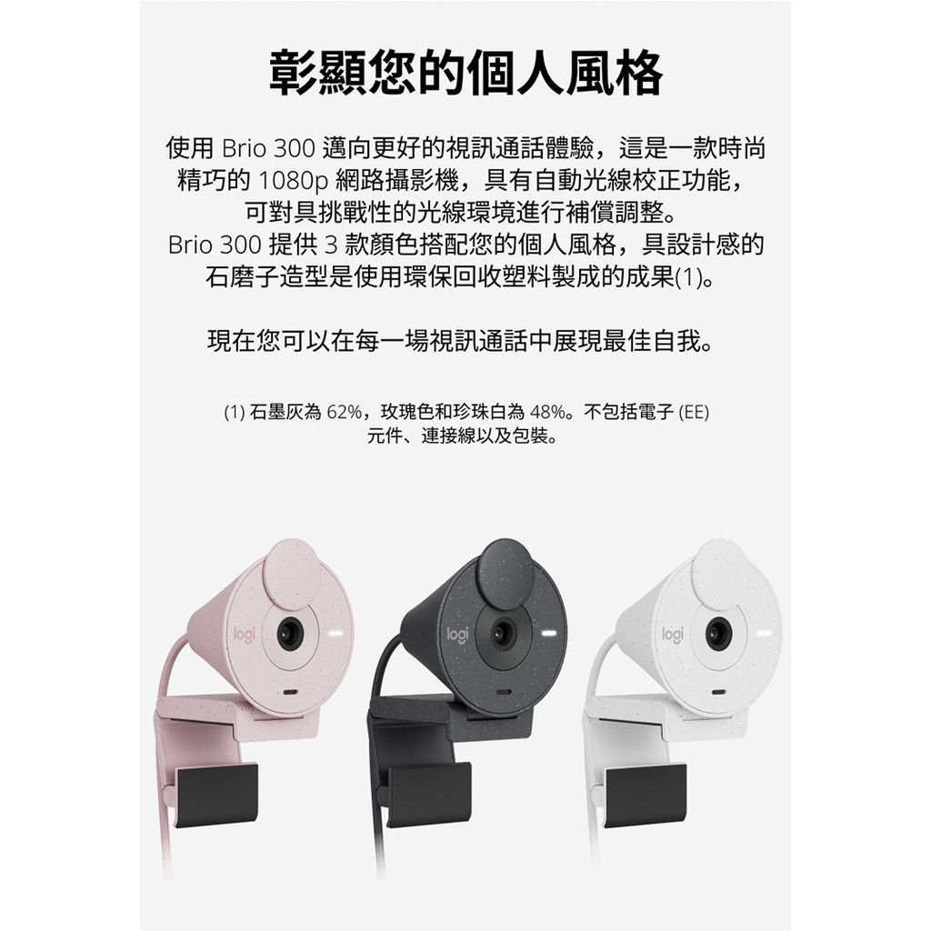 【Logitech 羅技】BRIO 300 網路攝影機 石墨黑
