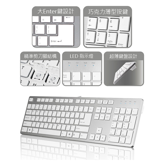【iRocks】IRK01 巧克力超薄鍵盤 - 銀色