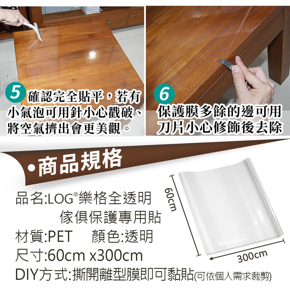 LOG樂格 傢具專用保護貼 易撕不殘膠 傢具保護貼 直貼式 透明保護貼-2入
