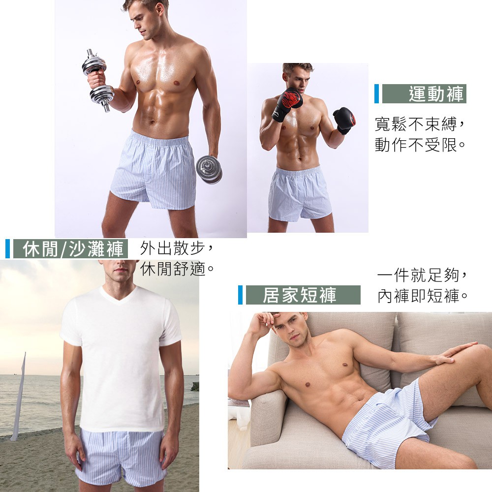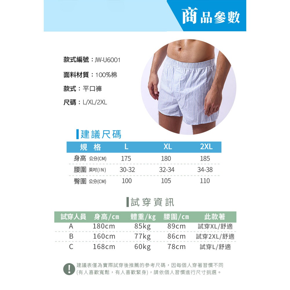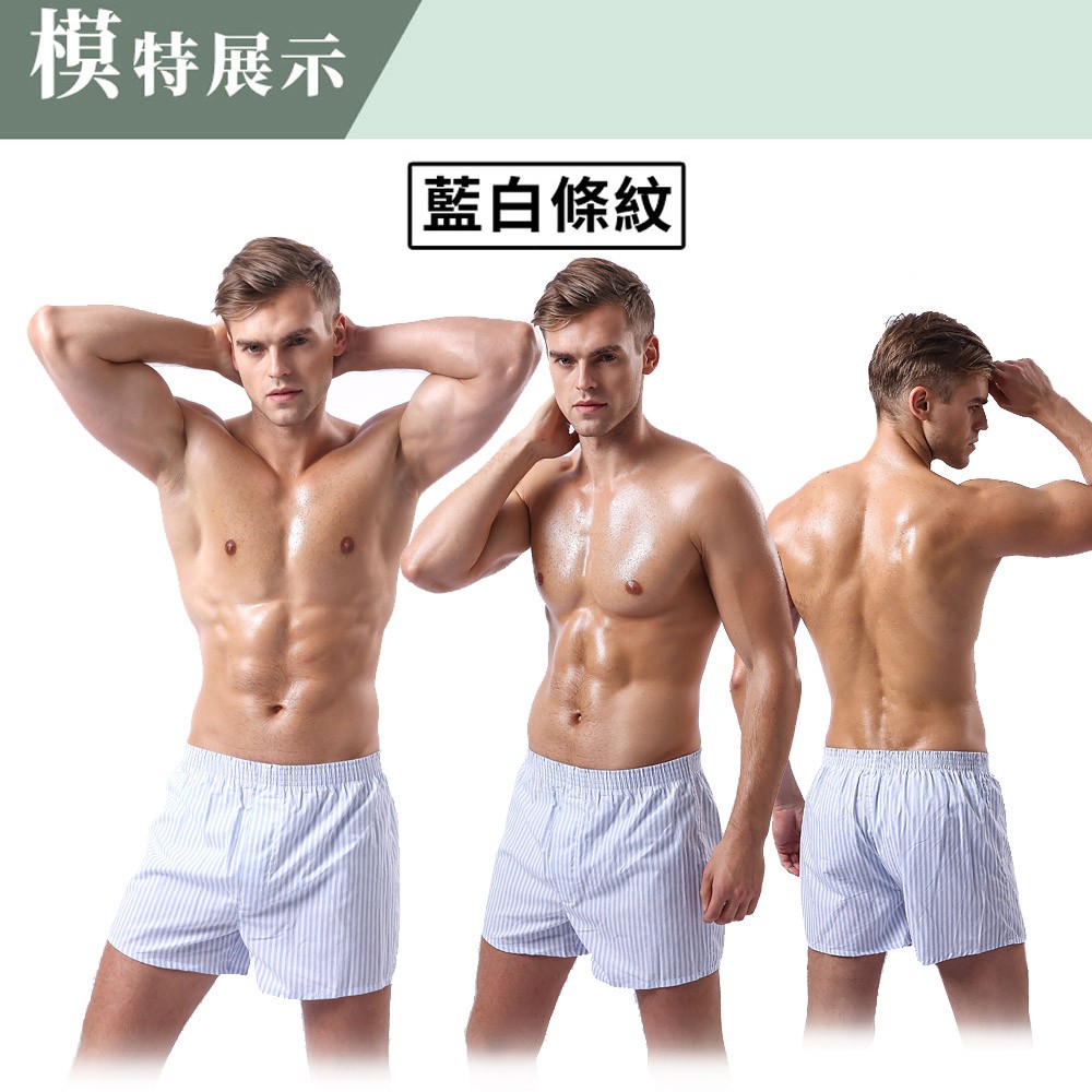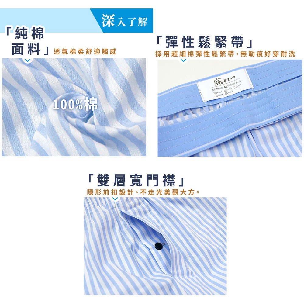 究jowear 100%純棉舒適男四角褲 -藍白條紋 (U6001)