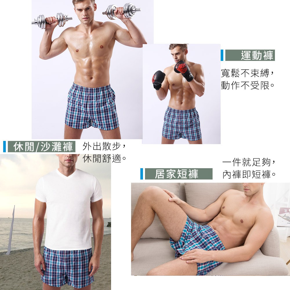 究jowear 100%純棉舒適男四角褲 -碧波格紋 (U6004)