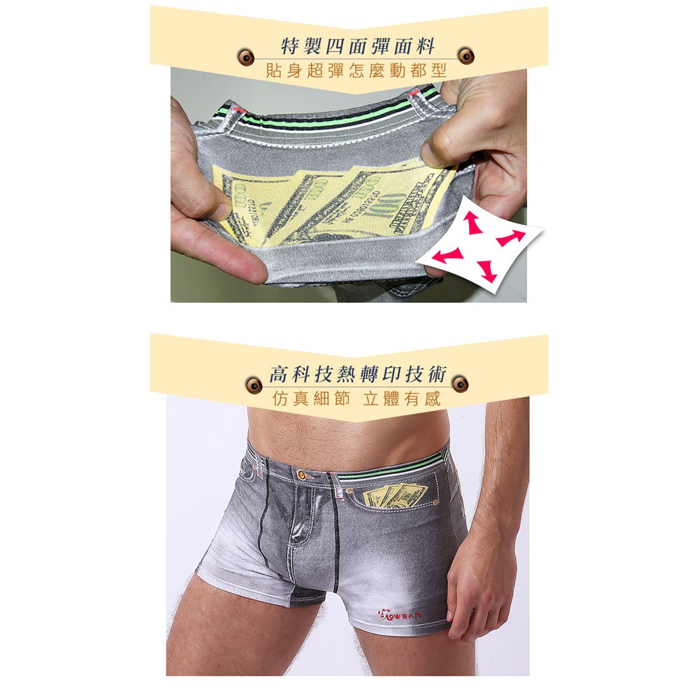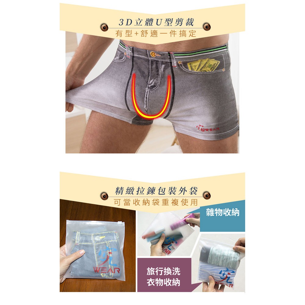 究jowear 仿丹寧棉質彈性男四角/平口褲 -黑色重水洗 (B3005)