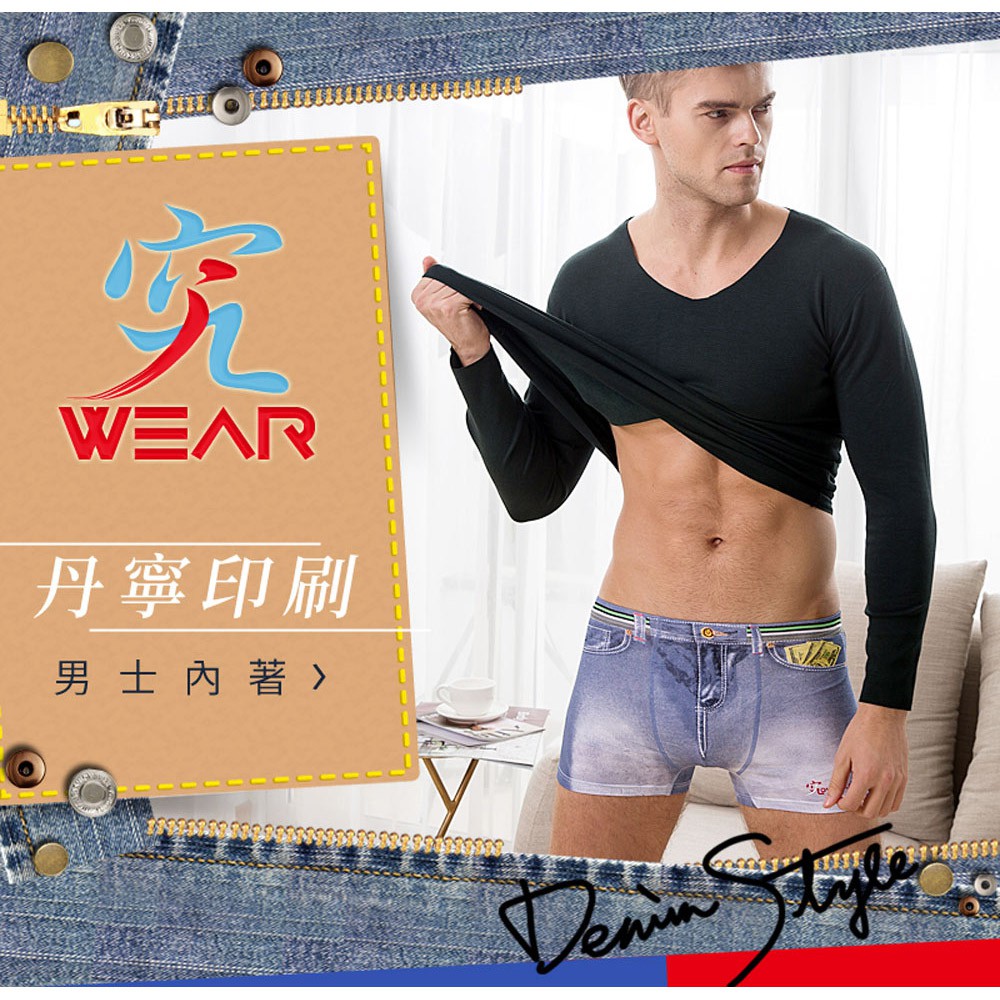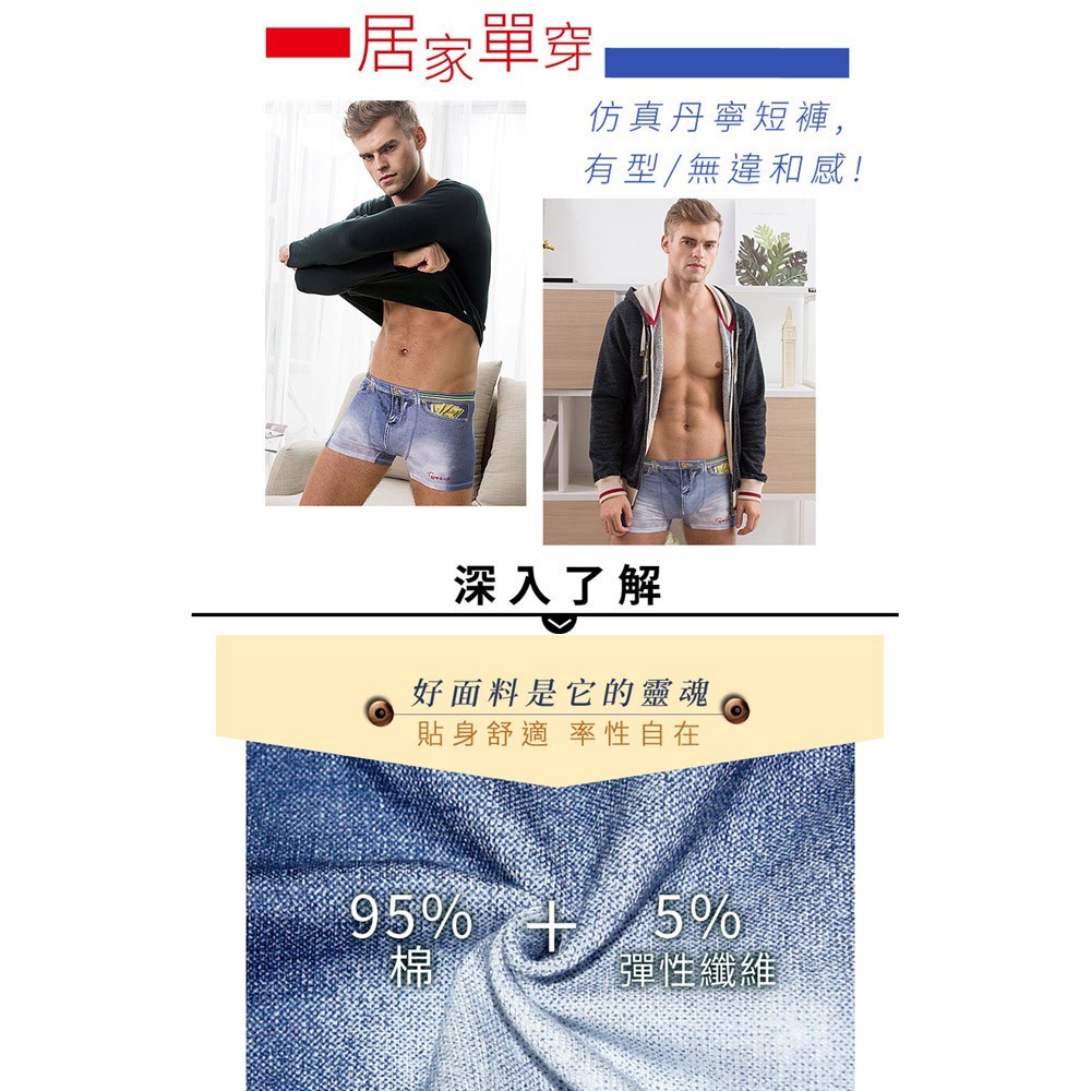 究jowear 仿丹寧棉質彈性男四角/平口褲 -藍色重水洗 (L3003)