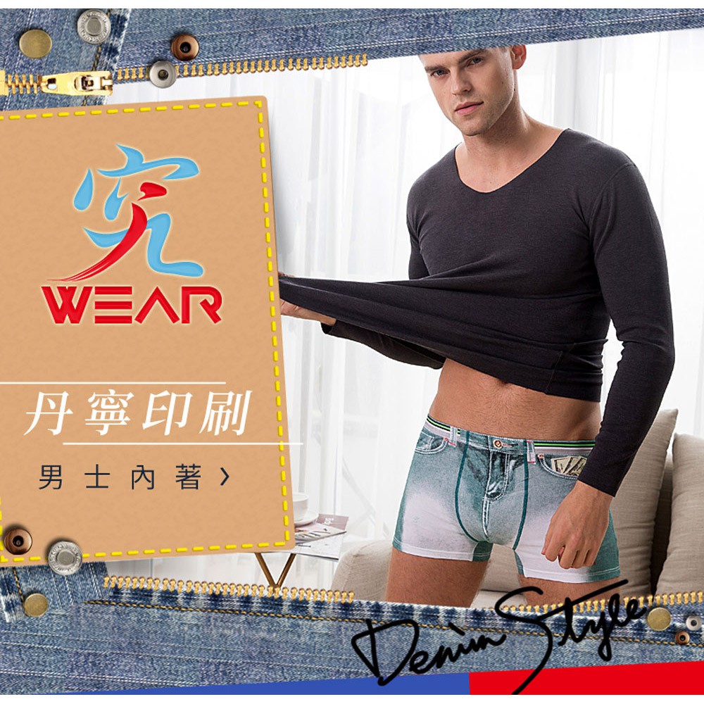 究jowear 仿丹寧棉質彈性男四角/平口褲 -軍綠色重水洗 (Q3004)