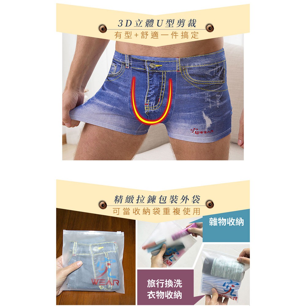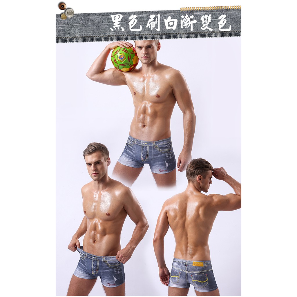 究jowear 仿丹寧棉質彈性男四角/平口褲 -藍色刷白漸變色 (U3006)