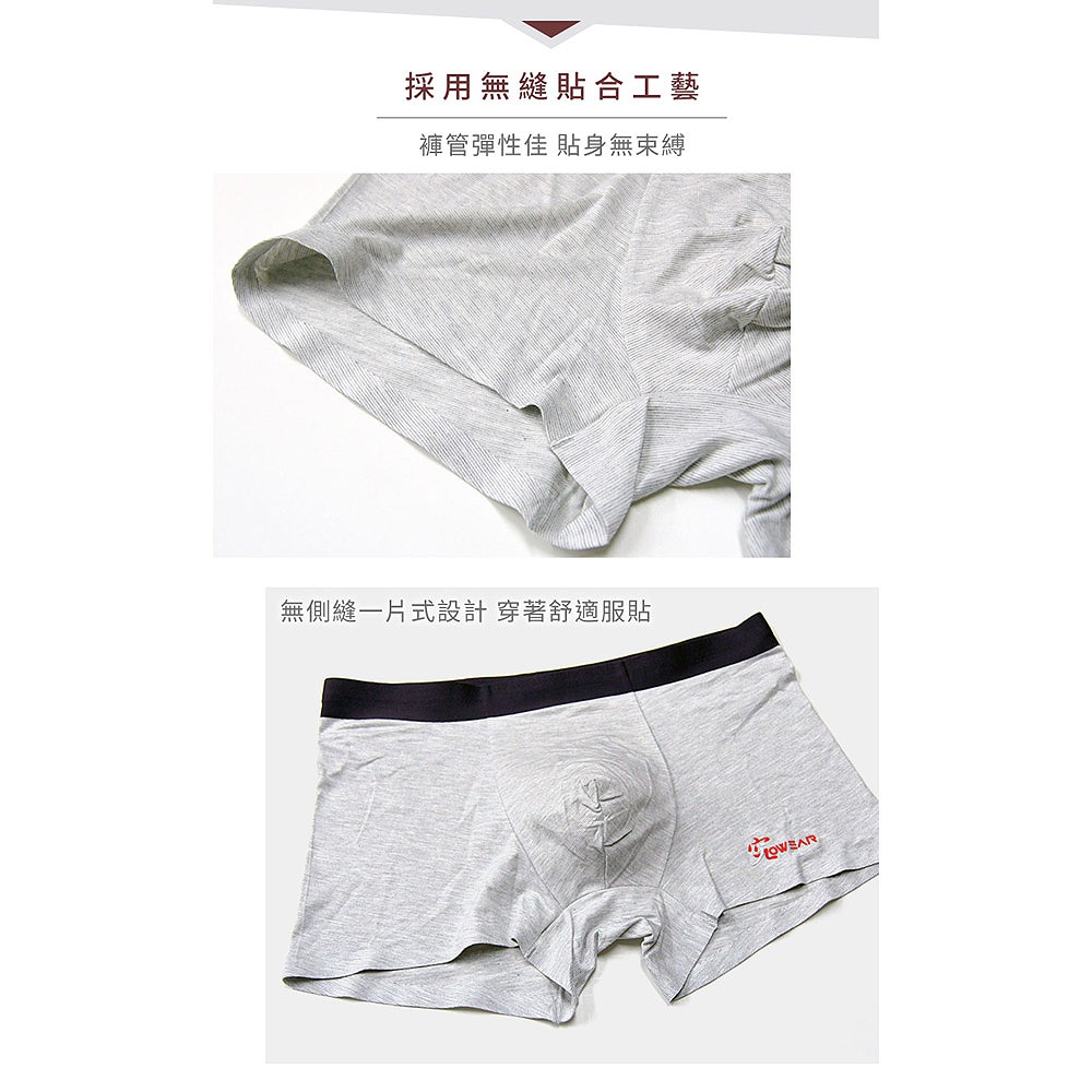 究 無痕 JOWEAR 雅仕雪灰柔舒雙色紗 莫代爾平口無痕男內褲 (G4002)