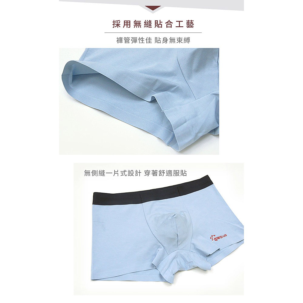 究 無痕 jowear 純經典湖水藍95棉質彈性 平口無痕男內褲 (L4009)
