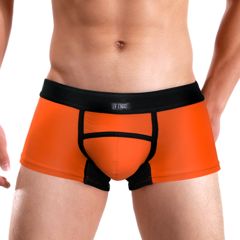 TIKU 梯酷 透氣交織棉 寬版激凸 平口褲 四角男內褲 1243 - 黑橘 OC1243