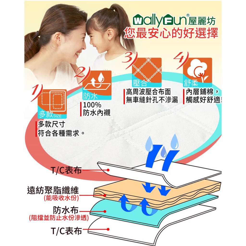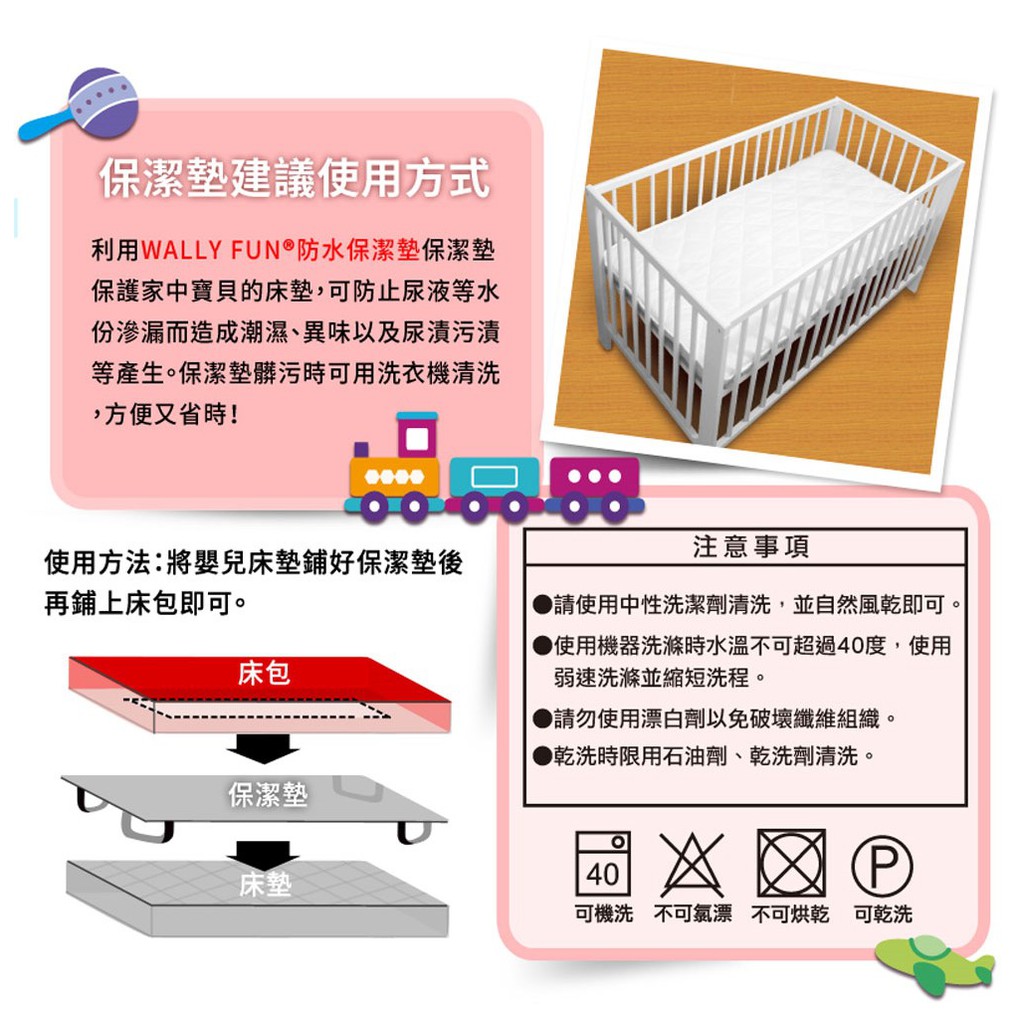 WallyFun 屋麗坊 防水款 嬰兒床平單式防水保潔墊 - 可客製化