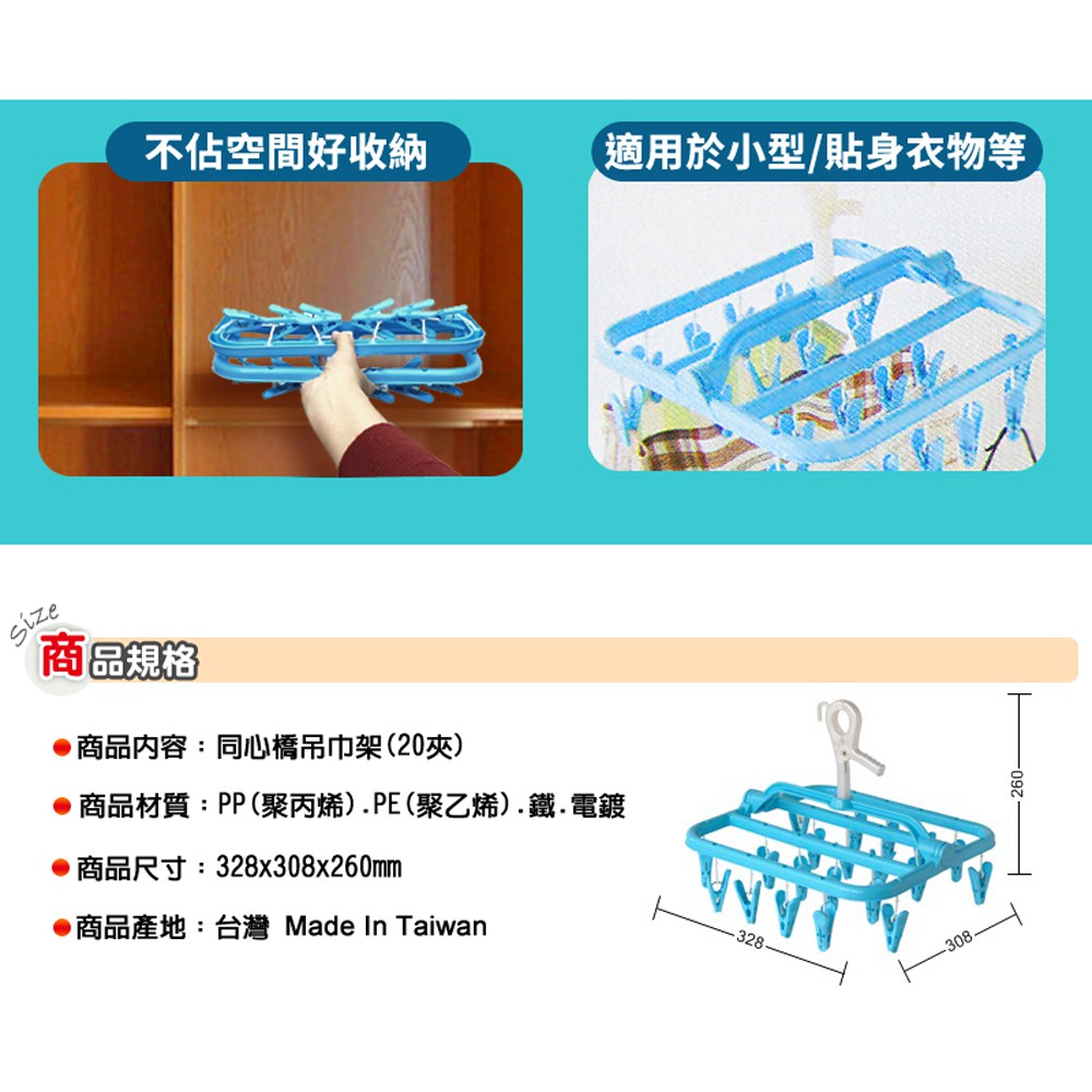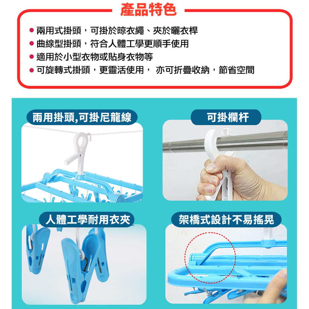 WallyFun 屋麗坊 可折20夾方形曬衣架