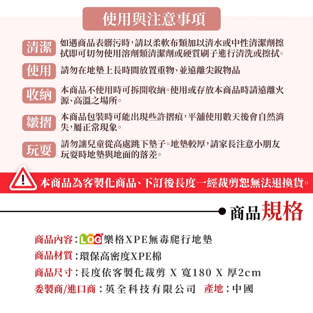 LOG 樂格 XPE 客製化 自由剪裁爬行地墊-M39687(每一公分計價) 通過BSMI商檢局認證字號M39687