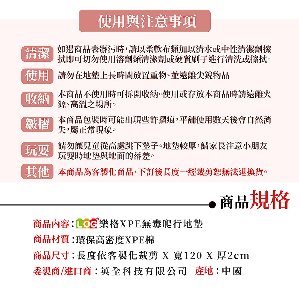 LOG 樂格 XPE 客製化 自由剪裁遊戲爬行地墊 居家地墊 -蘇木紋 (每一公分計價)