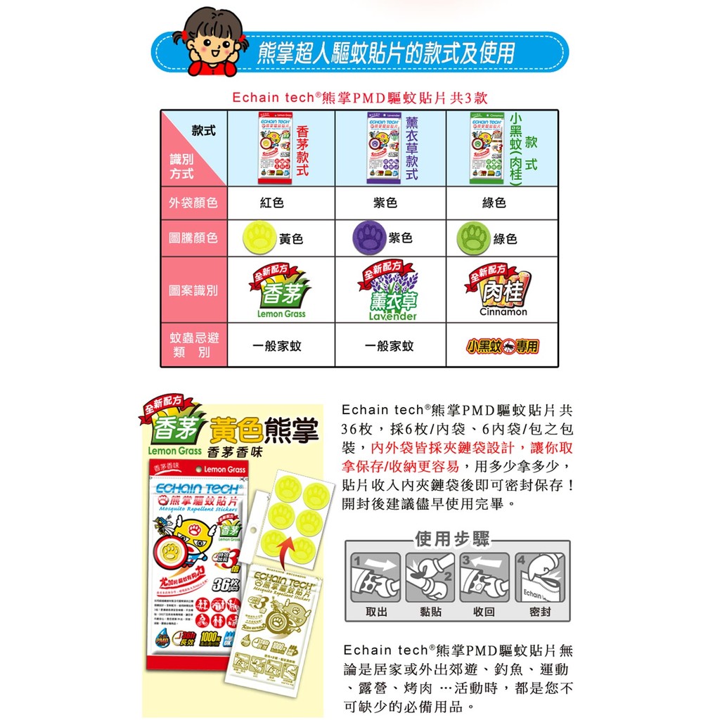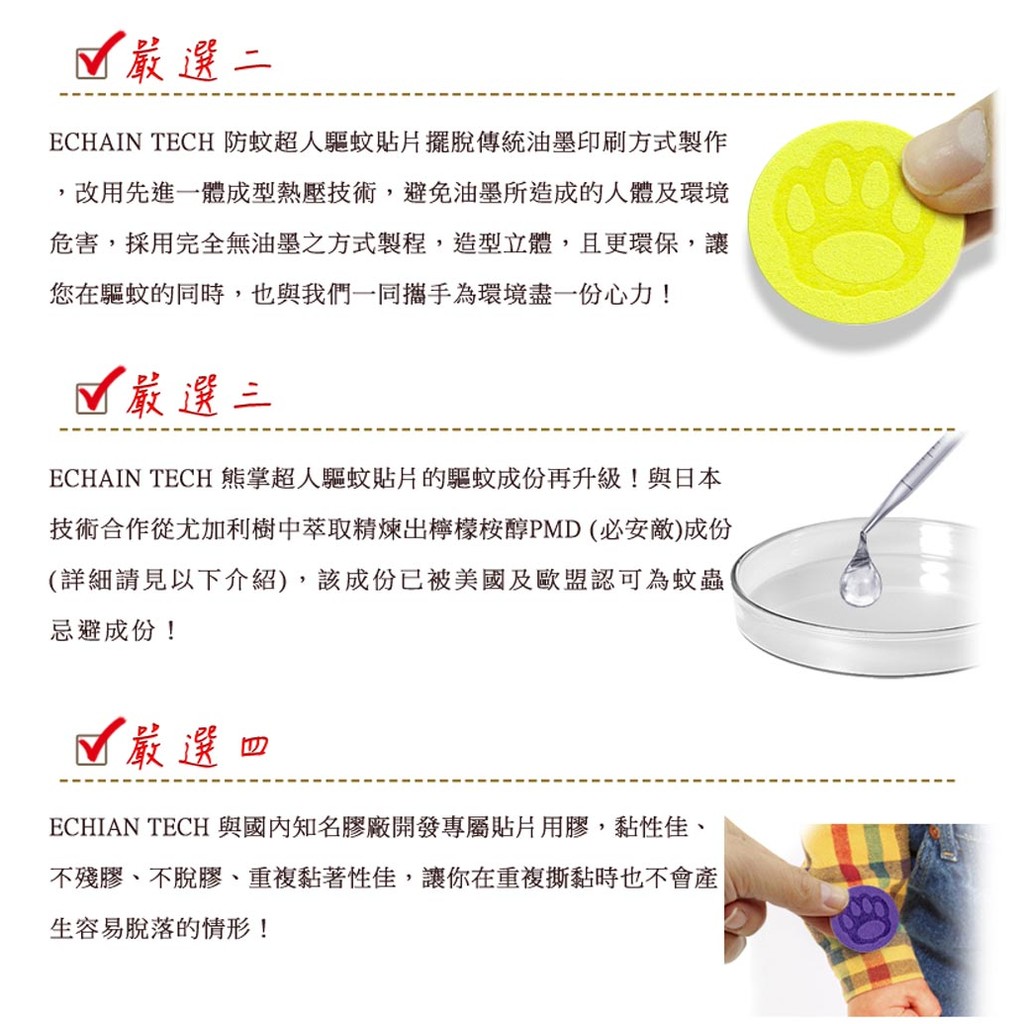ECHAIN TECH 熊掌超人 長效驅蚊貼片 PMD 防蚊貼片 強效防蚊36枚 -香茅款