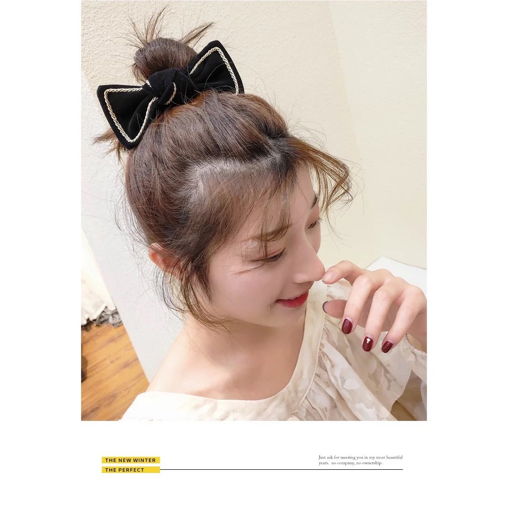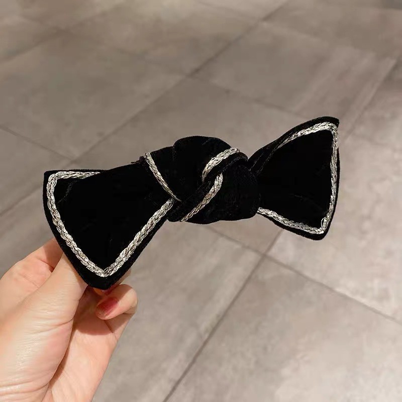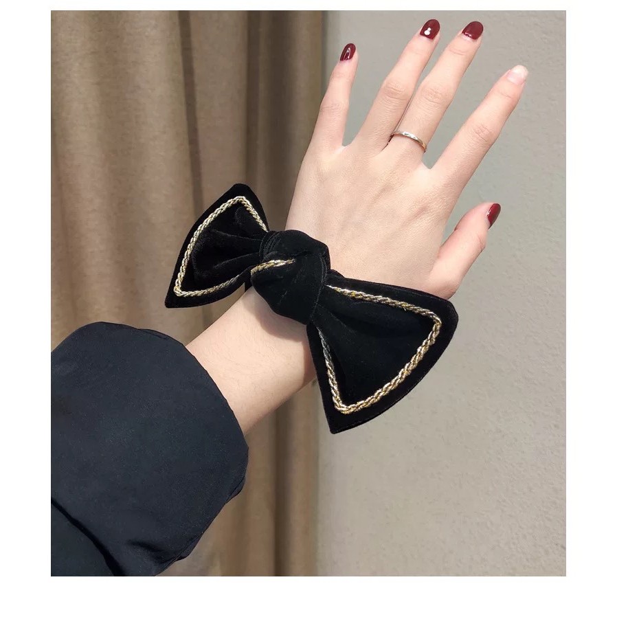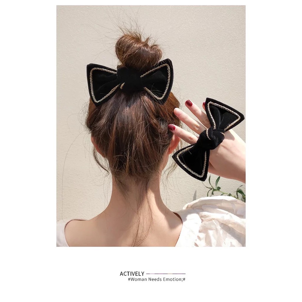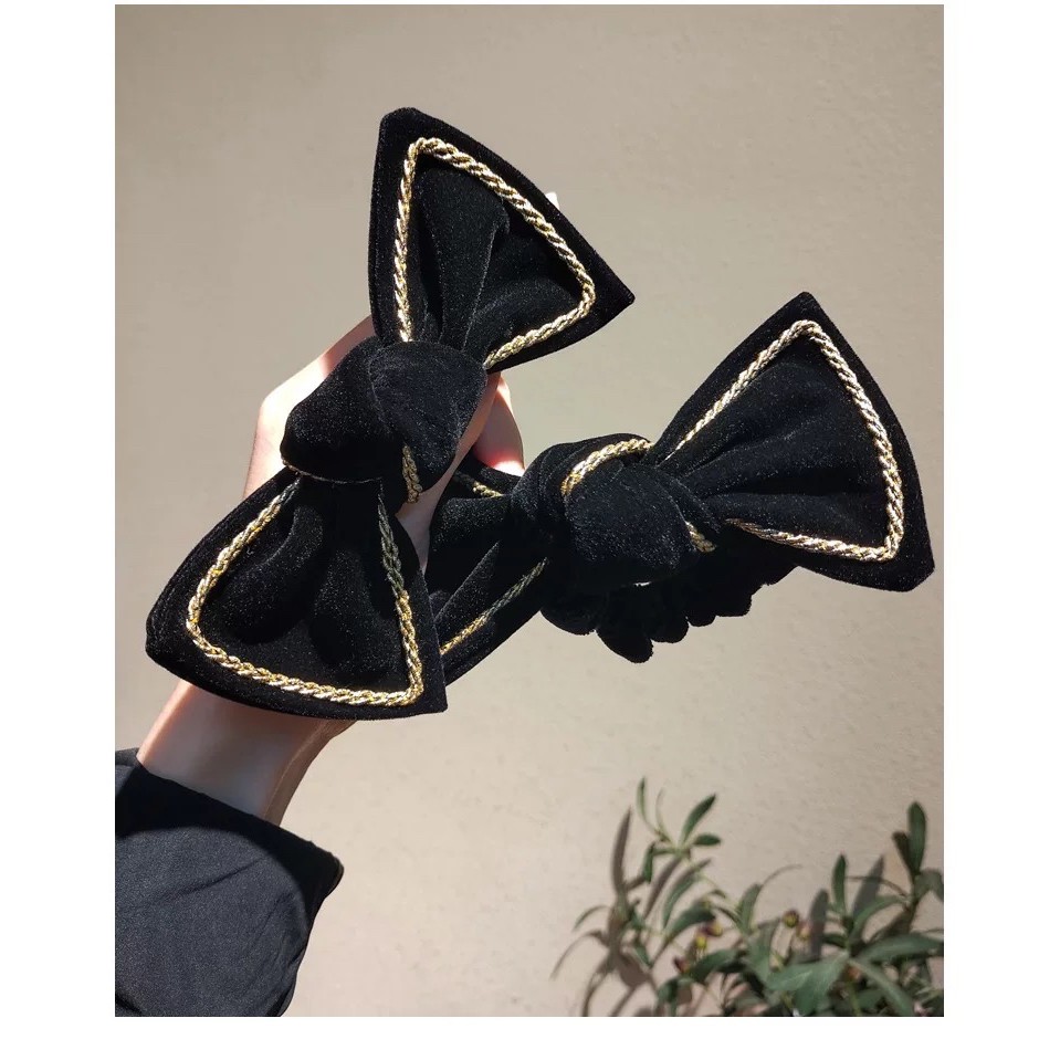 台灣現貨韓國頭繩 網紅金絲絨發圈 黑色蝴蝶結髮夾 發卡 發繩女 後腦勺復古頭繩 氣質發飾 少女簡約可愛頭飾 女