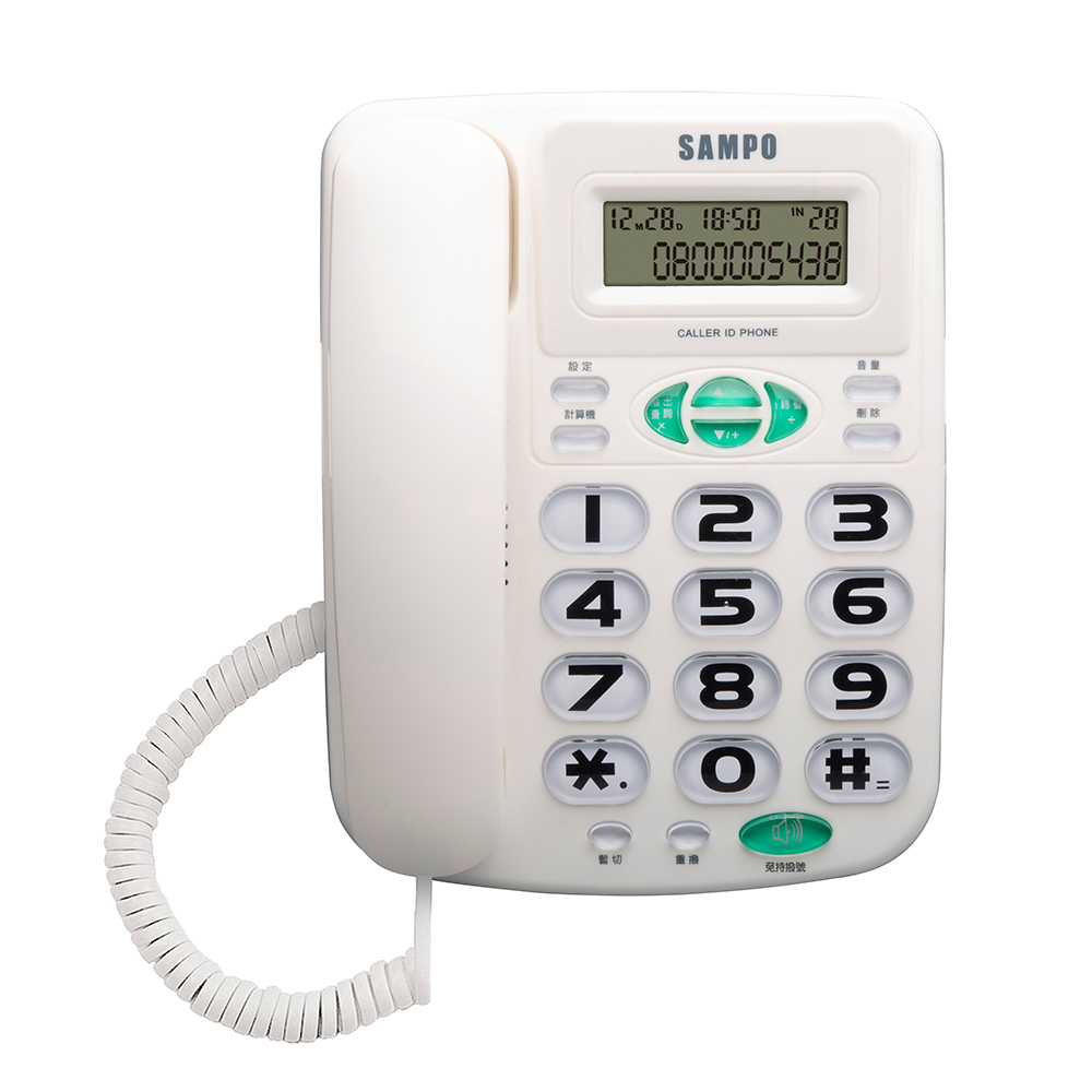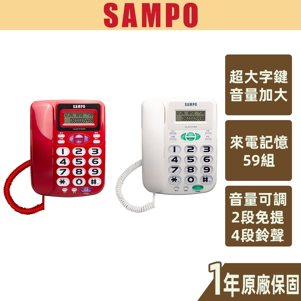 【SAMPO聲寶】大字鍵有線電話 大音量 來電記憶 保留 重播 預覽撥號 免持 HT-W2202L