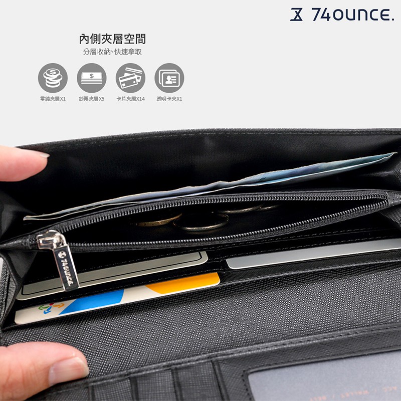 74ounce 皮夾 Cross 十字紋真皮翻蓋手拿長夾[N-564-CR]