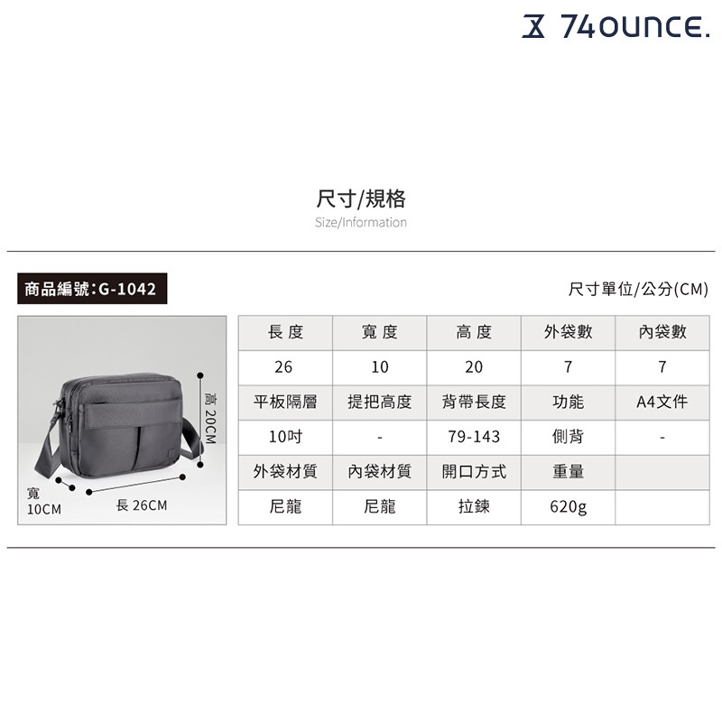 74ounce U系列 雙層雙口袋側背包業務上班族斜背包防水[G-1042-U-M]