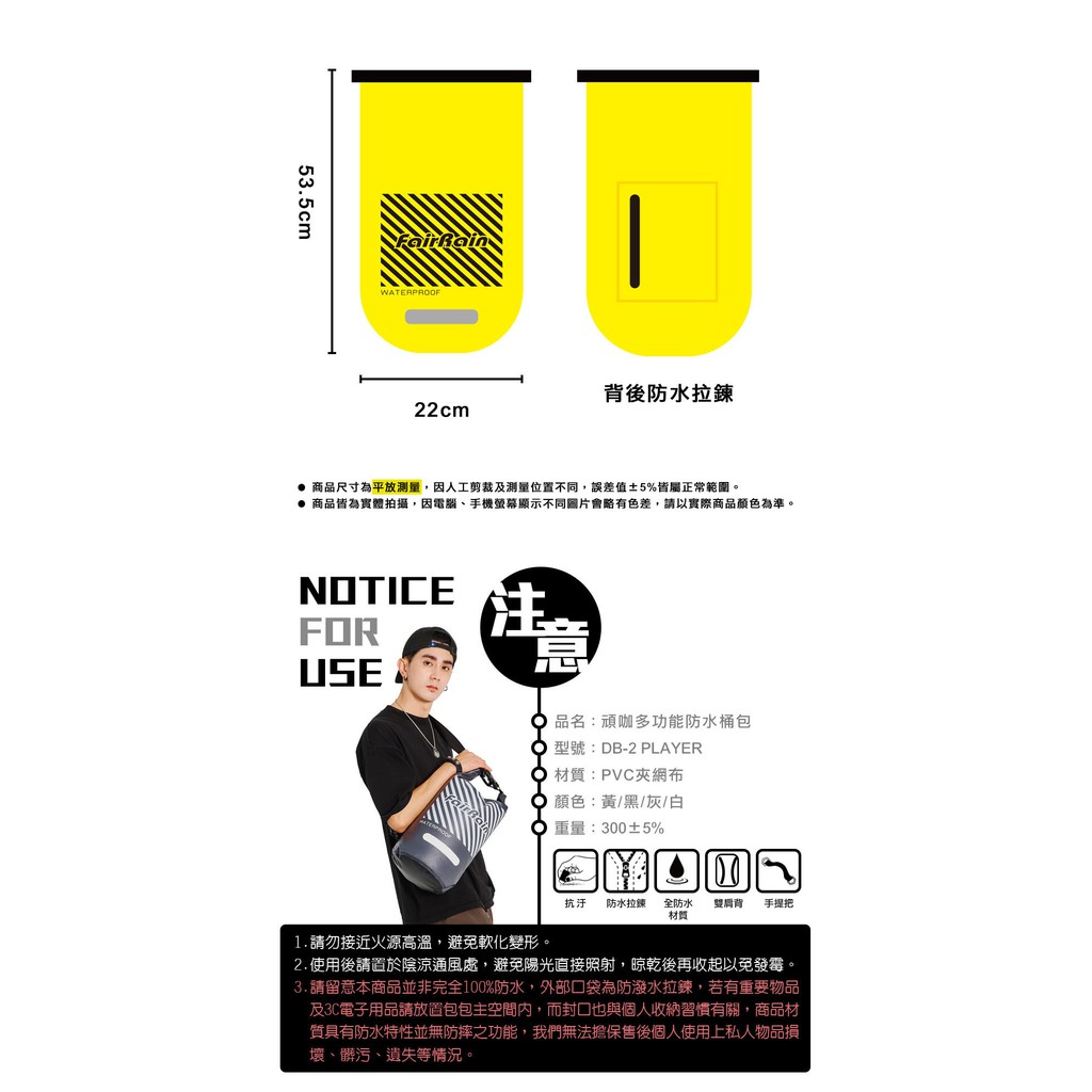 Fairrain 頑咖多用途防水桶包 白色 15L 雙肩 可拆式背帶 超大空間收納便利防水包 防水袋 漂流袋 防水桶包