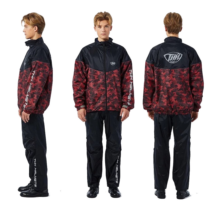 寶嘉尼 BAOGANI x THH 聯名款 TR2 兩件式 迷彩紅 雙拉鍊 可拆式雨帽 防水口罩設計 網狀內裡 雨衣