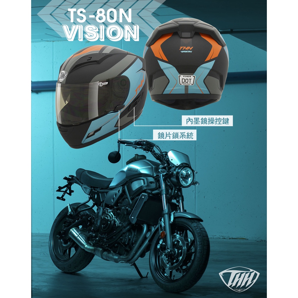 THH 安全帽 TS-80N VISION 藍黃白 透氣 全拆洗 抗UV 內墨鏡 雙D扣 全罩《淘帽屋》