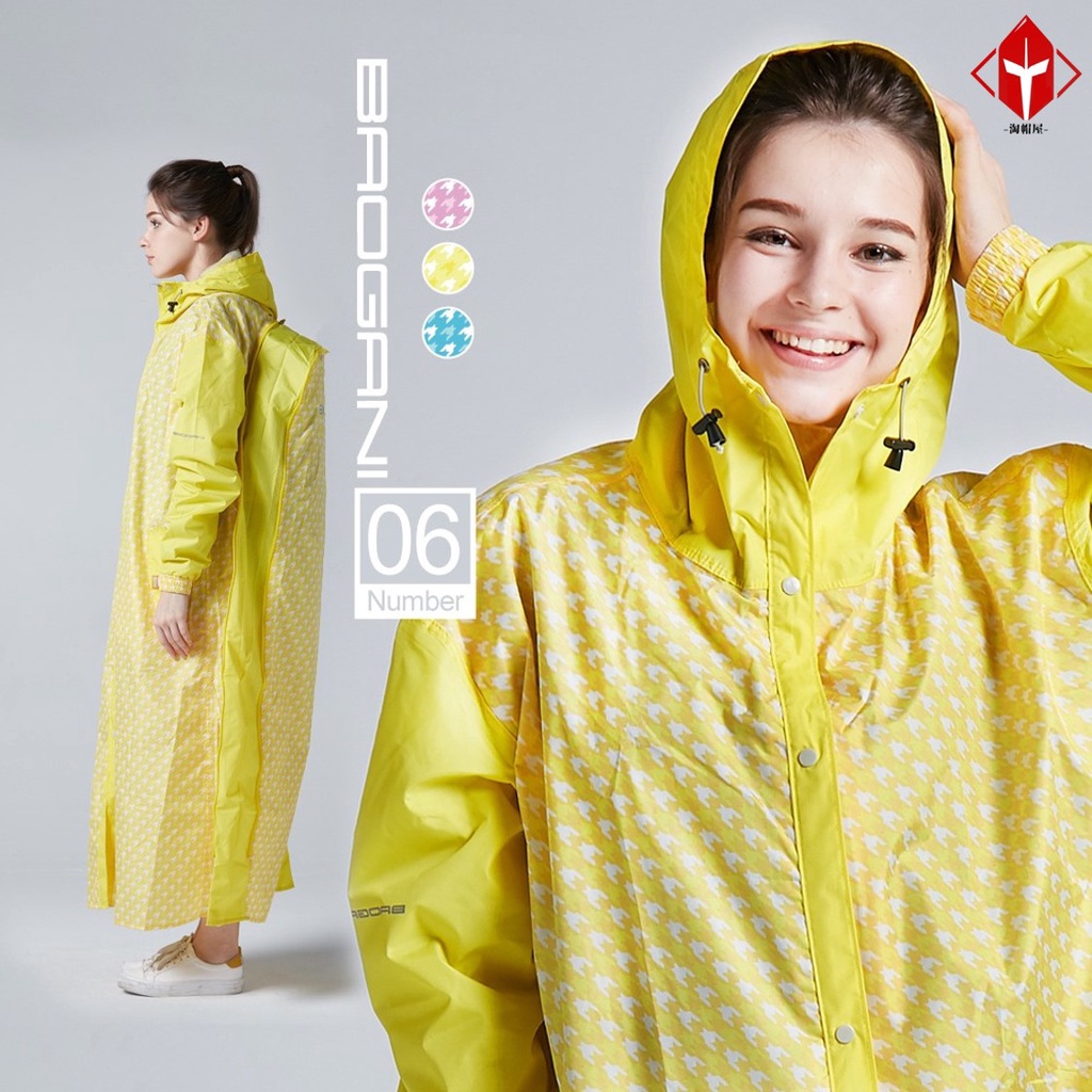 寶嘉尼 BAOGANI B06 千鳥格背包客多功能前開拉鍊雨衣 黃色 背包款雨衣 加大雨衣 一件式雨衣【淘帽屋】