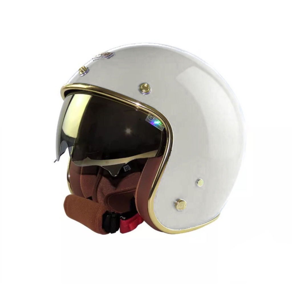 華泰 安全帽 K-806B 晶淬 冷灰 金色邊框 多層膜內墨鏡 皮革 全拆洗 金屬齒排釦 復古帽《淘帽屋》