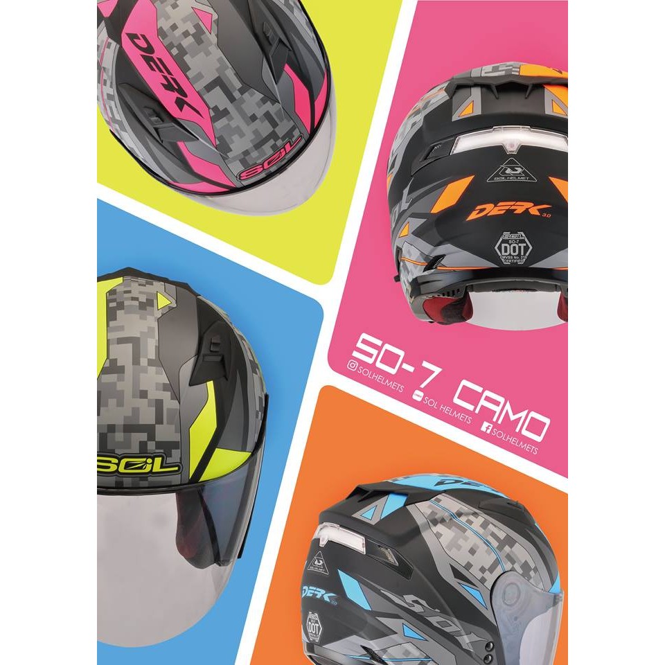 SOL SO-7/SO7 安全帽 迷彩 消光黑黃 雙層鏡片 雙D扣 排齒釦 半罩
