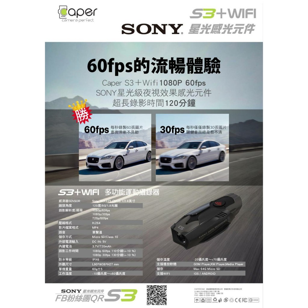 Caper S3+wifi SONY星光級感光 機車 行車紀錄器 1080P 60FPS 贈32G記憶卡《送10%回饋》