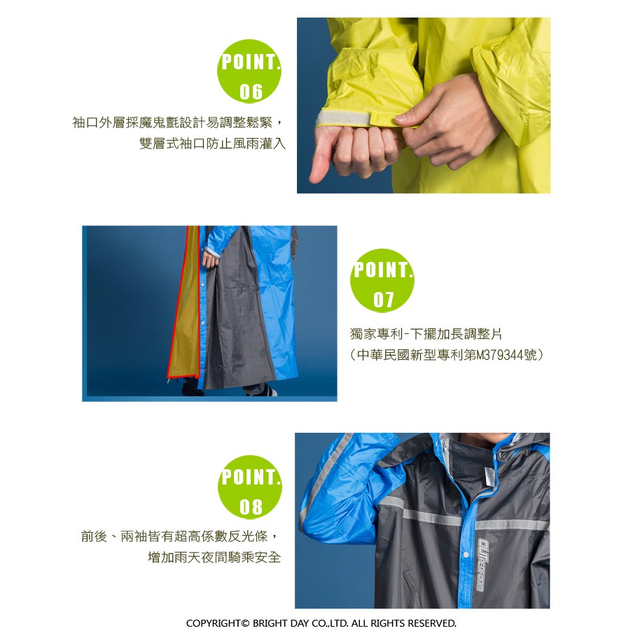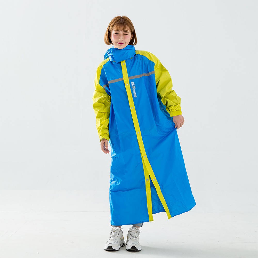 BrightDay 大人背包前開連身式風雨衣 藏衫罩背背款 藍黃 一件式雨衣 雨衣《淘帽屋》