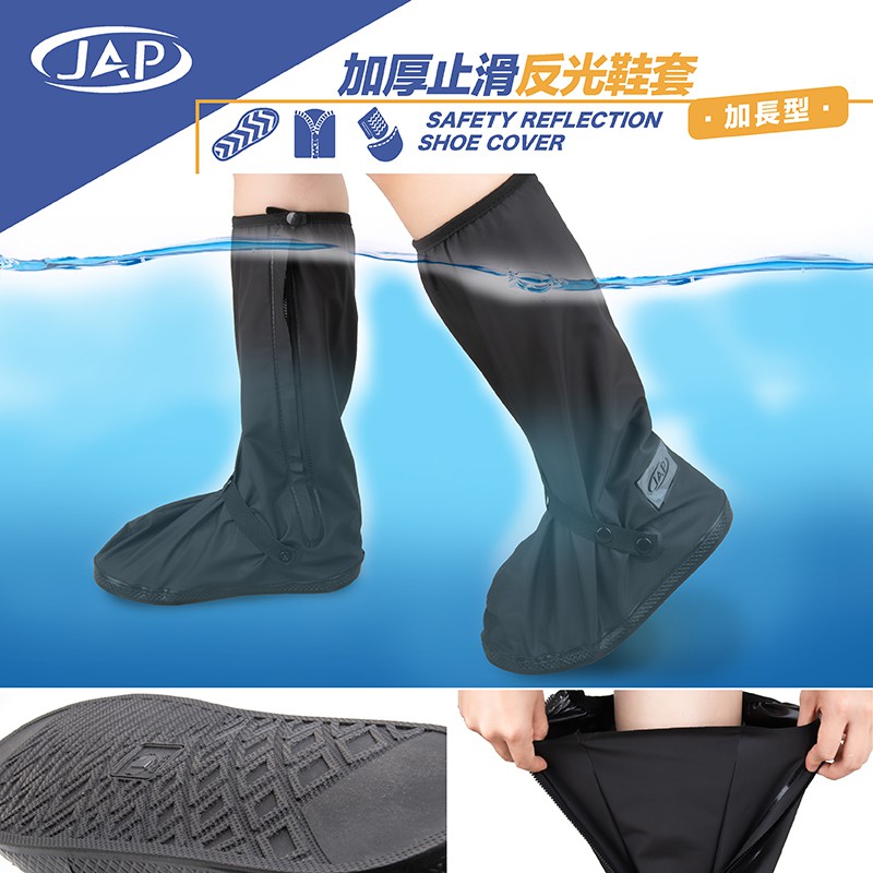 JAP YW-R713 加厚止滑反光鞋套 防滑鞋底 雙層防護 加長型 加厚型 好收納 止滑 反光 鞋套《淘帽屋》