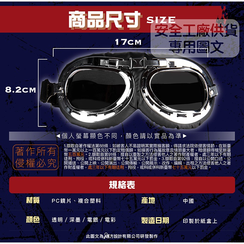 JAP C-C2 銀框風鏡 電彩 防衝擊 復古風 超輕量 護目鏡《淘帽屋》