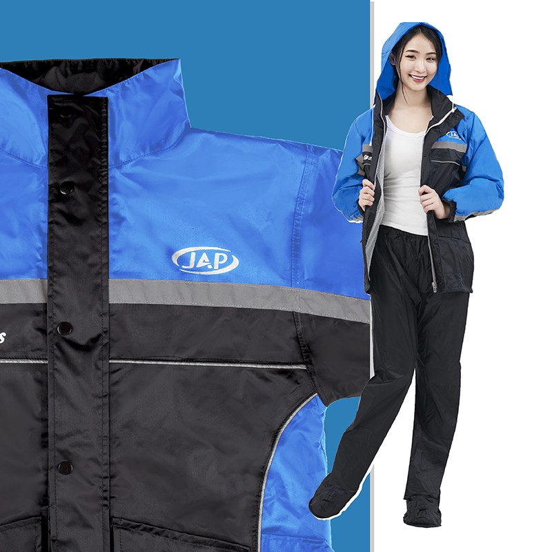 JAP YW-R208 全包覆式尼龍套裝雨衣 藍 反光條 透氣 網格內裏 不黏身 一件式鞋套 兩件式 雨衣《淘帽屋》