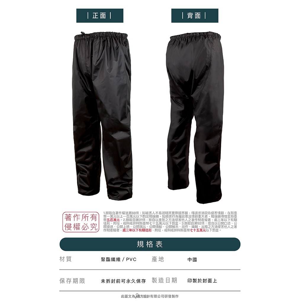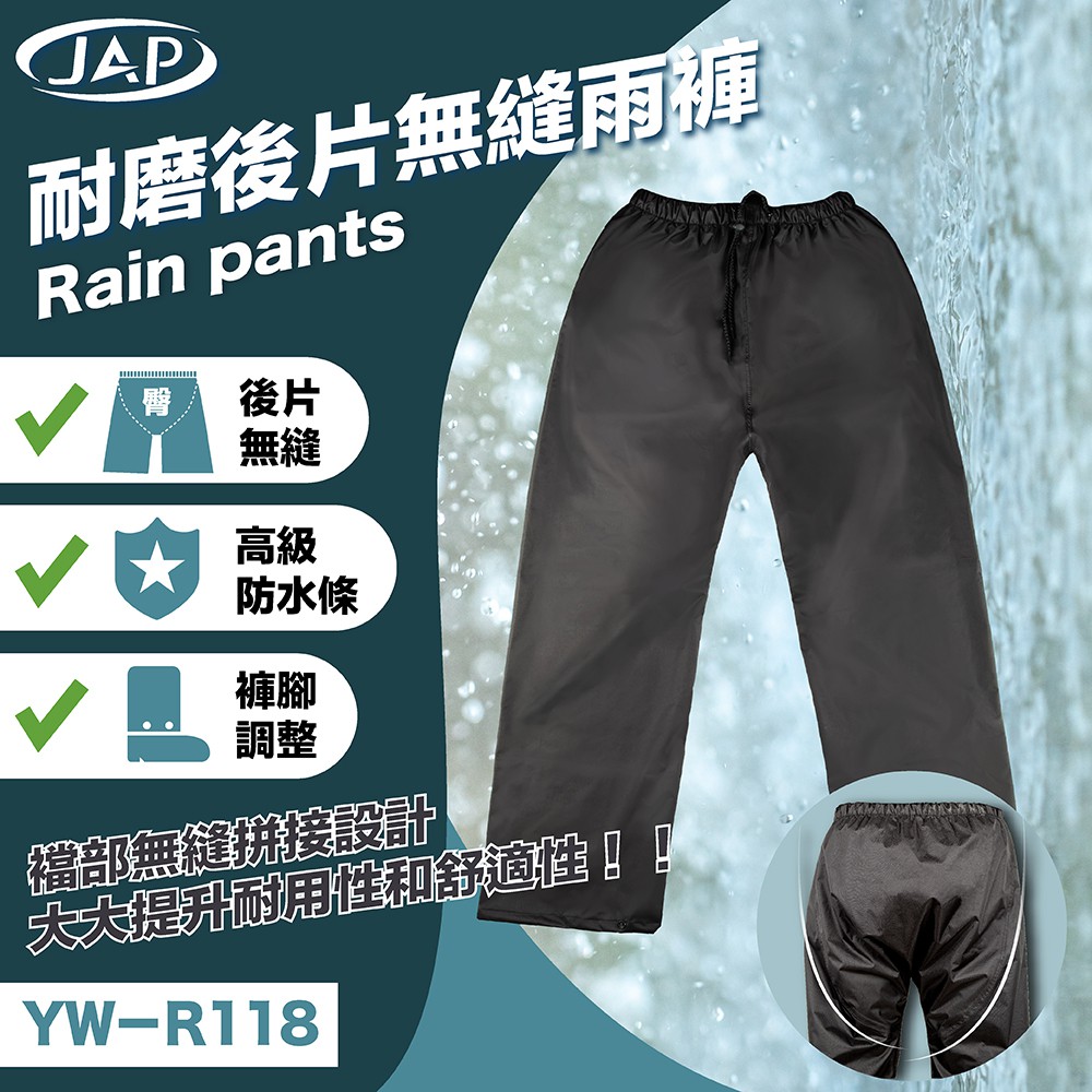 JAP 雨褲 YW-R118 耐磨後片無縫雨褲 高級防水條 防雨 彈性束腰 後片無縫雨褲 R118《淘帽屋》