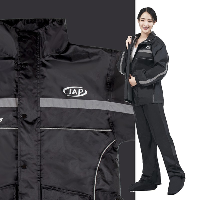 JAP YW-R208 全包覆式尼龍套裝雨衣 黑 反光條 透氣 網格內裏 不黏身 一件式鞋套 兩件式 雨衣《淘帽屋》