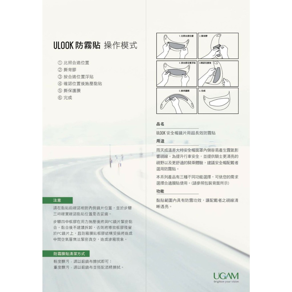 日本 UGAM ULOOK 防霧貼片 防霧貼 防霧片 安全帽 鏡片 不留殘膠 防眩光 全罩式、3/4罩《淘帽屋》