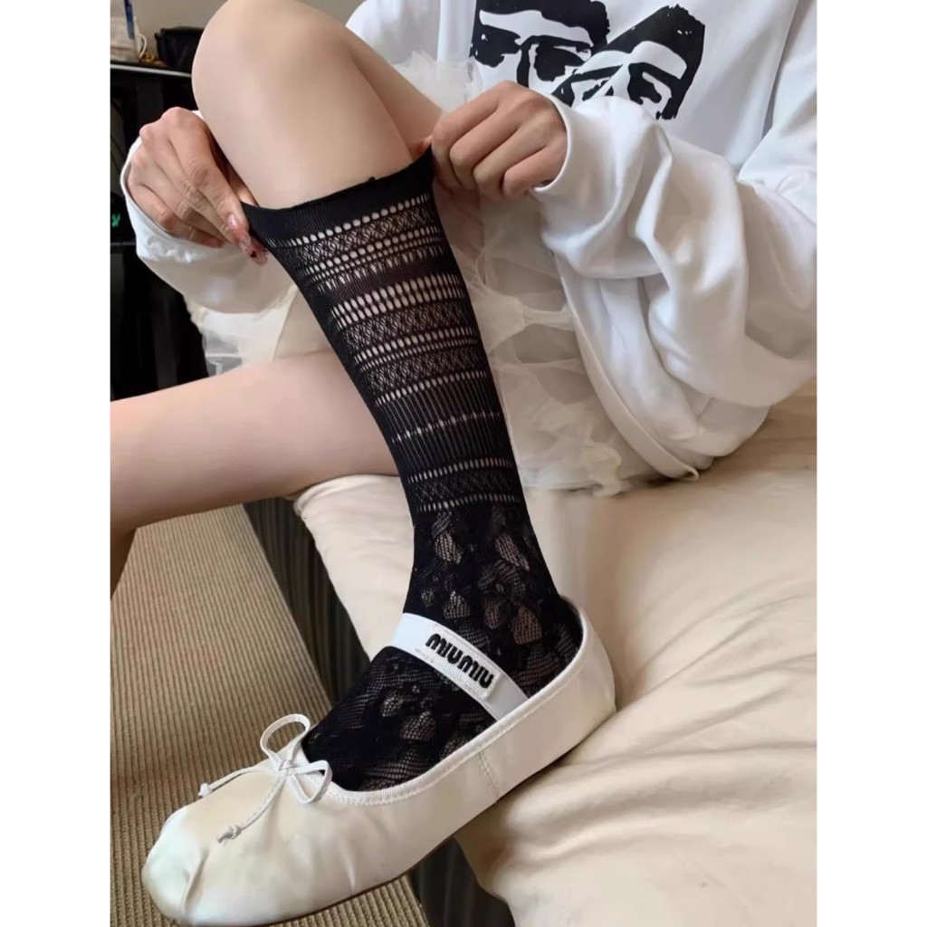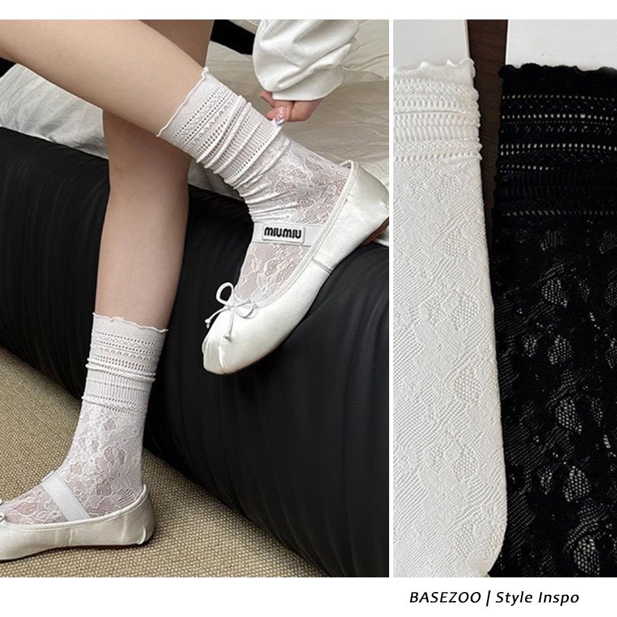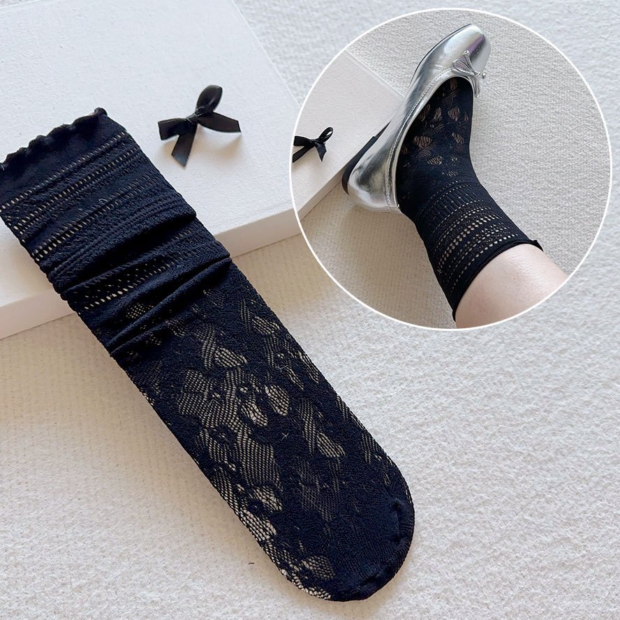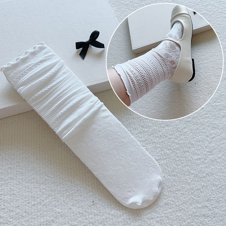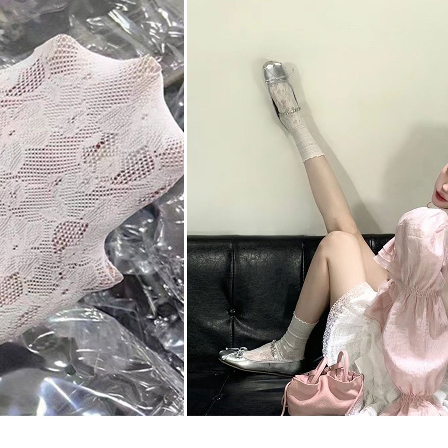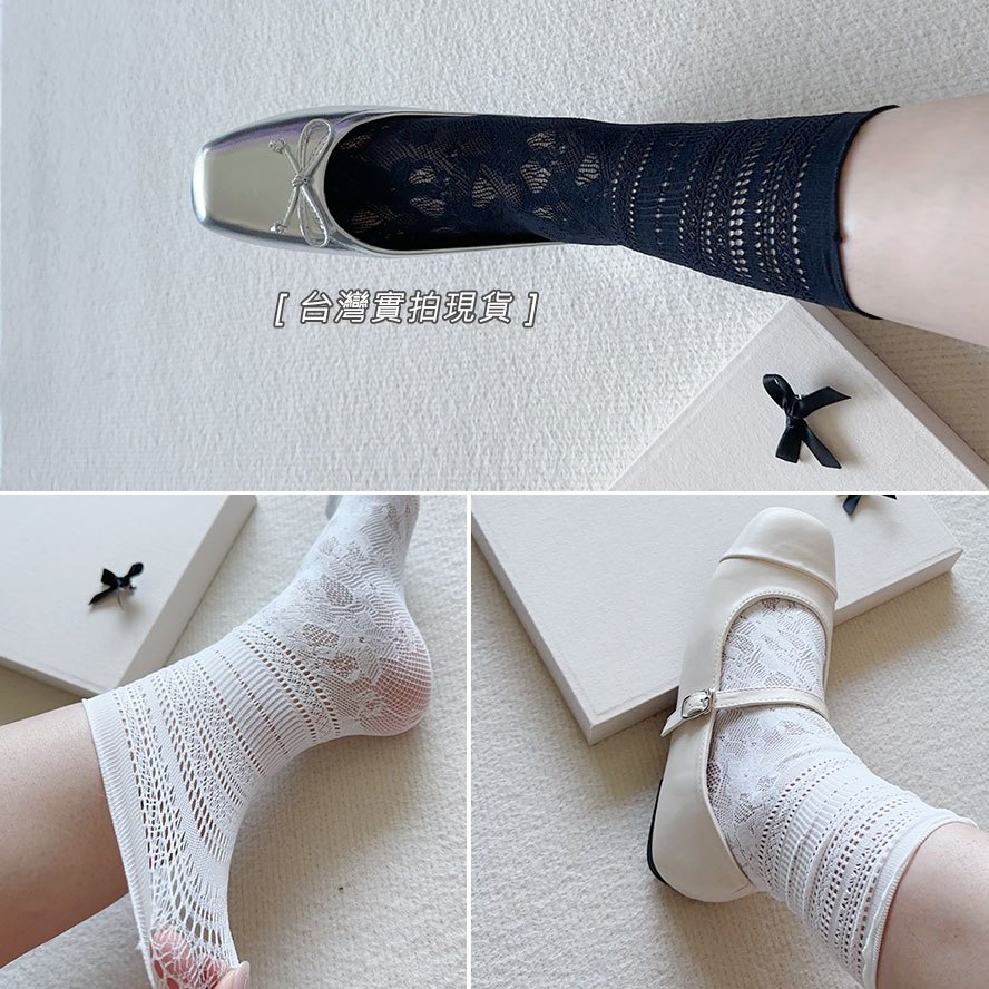 【全館現貨】 超美緹花蕾絲襪 韓系芭蕾風蕾絲堆堆襪 好舒適親膚蕾絲中筒襪 瑪莉珍鞋搭配也好看【881561 2】
