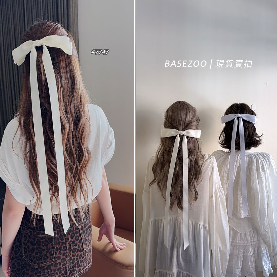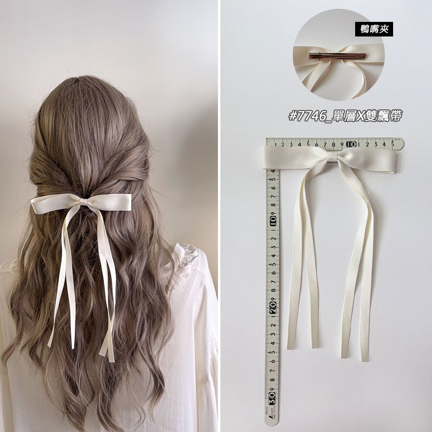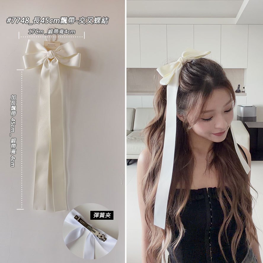 現貨實拍-法式優雅~緞帶蝴蝶結髮夾 韓系芭蕾風飄帶髮飾 公主頭加大蝴蝶結髮夾 高質感緞面蝴蝶結長飄帶彈簧夾 7746