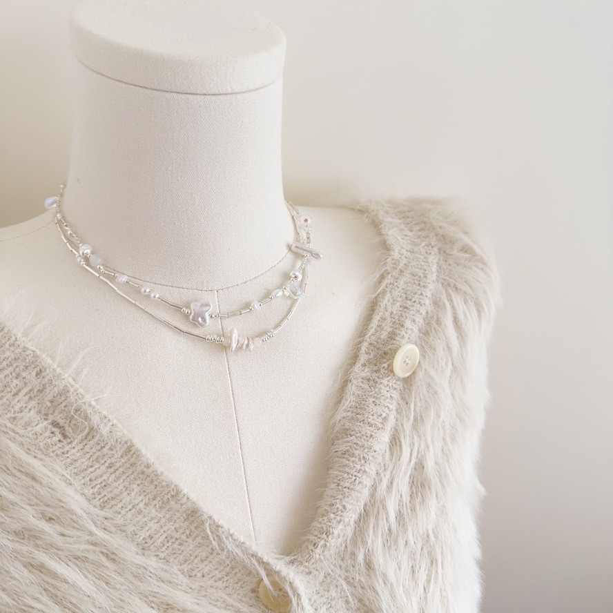【全館現貨】 實拍❤法式甜美款珍珠串珠項鍊銀X白不規則珍珠頸鍊 蝴蝶項鍊 珍珠項鍊 串珠項鍊【611016】