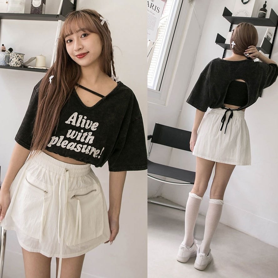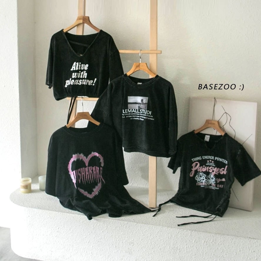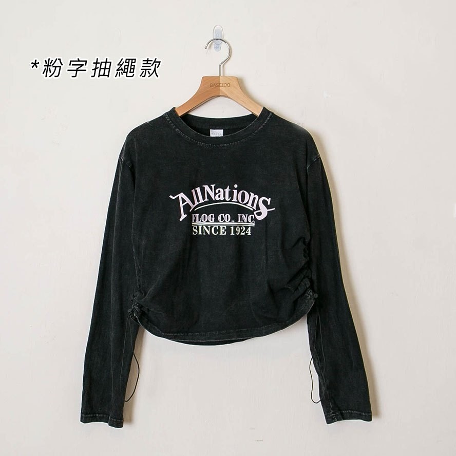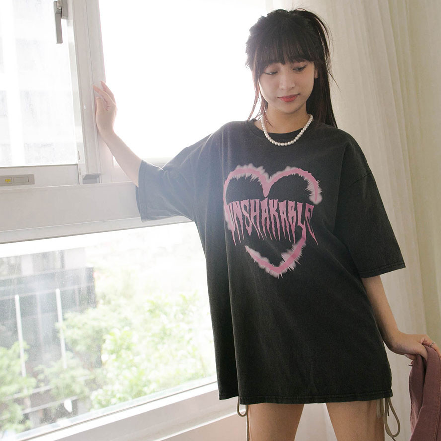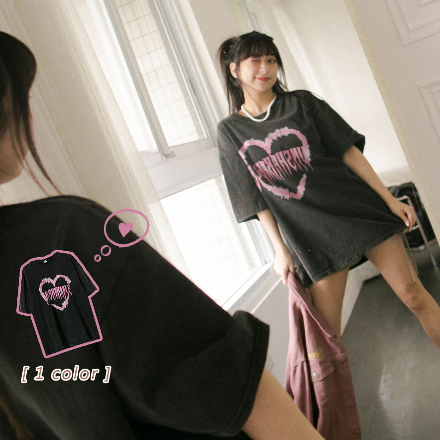 【全館現貨】 水洗黑灰印圖 長版棉T背心 短版上衣甜酷系水洗短袖棉T 短版棉T 短版t恤 長版t恤【811201】
