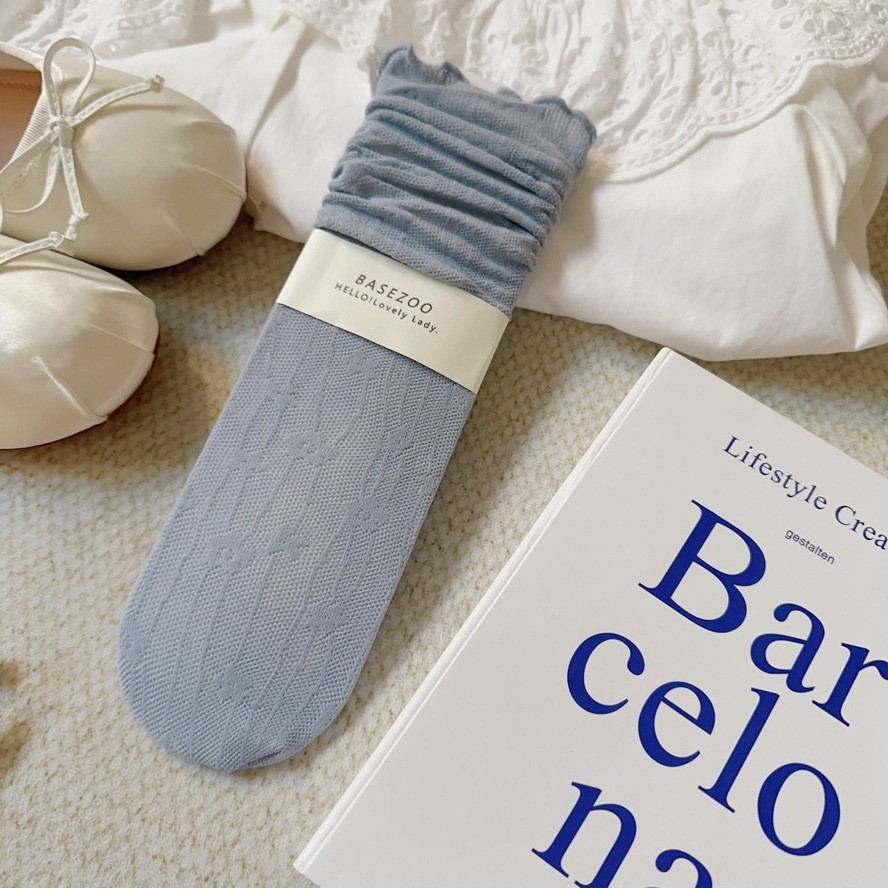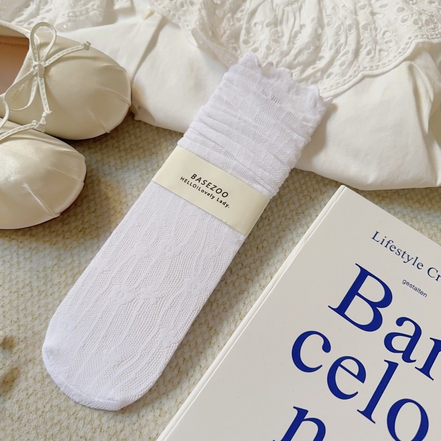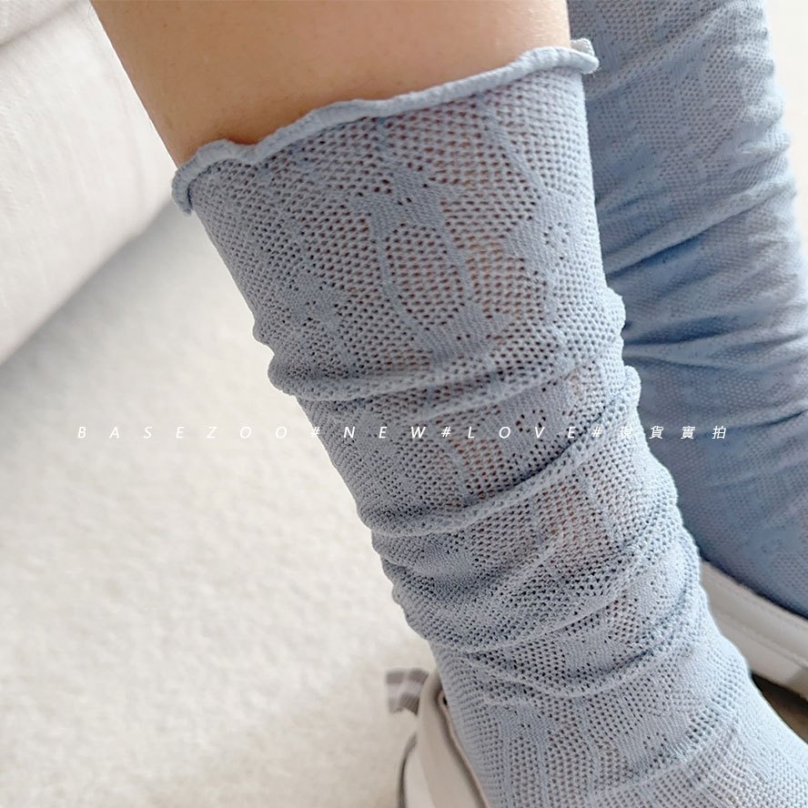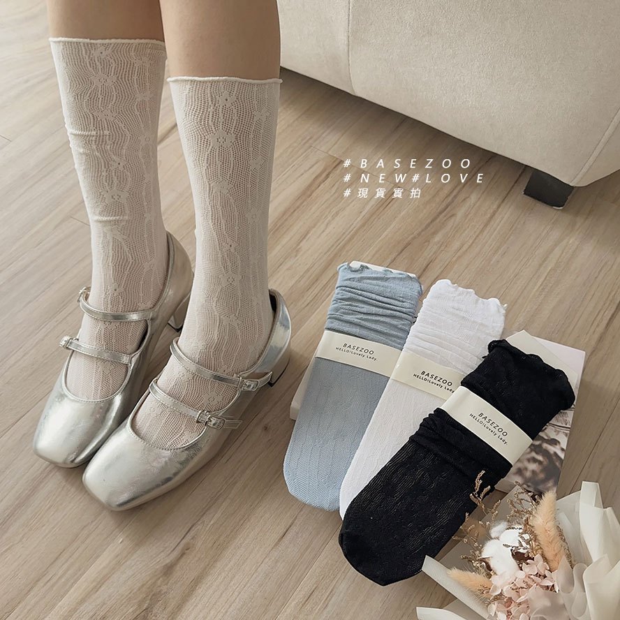 現貨實拍-韓系甜美芭蕾 小卷邊蕾絲短襪 【881726】 細緻彈性花邊蕾絲中統襪 女襪 日系蕾絲襪 蘿莉搭配蕾絲堆堆襪