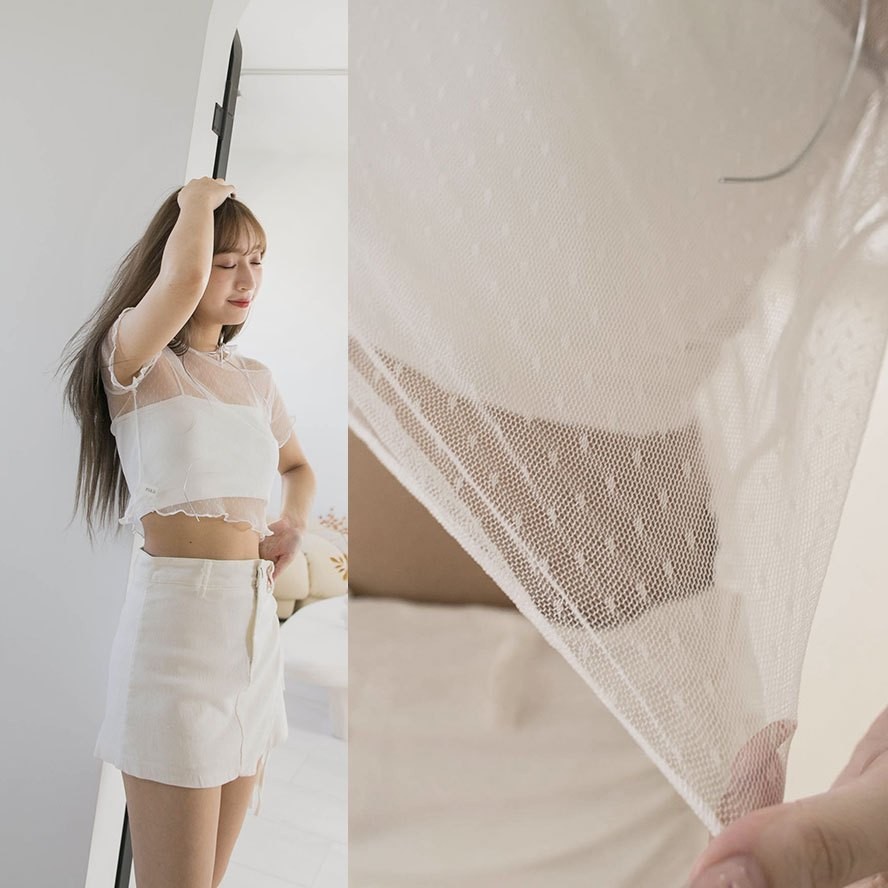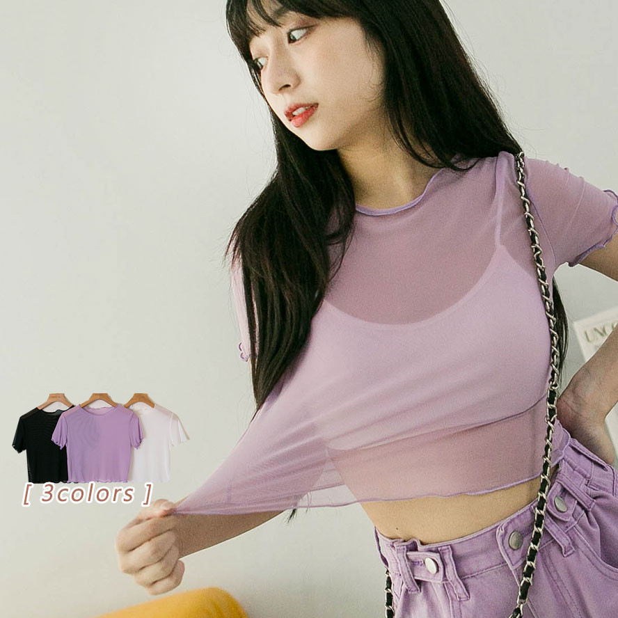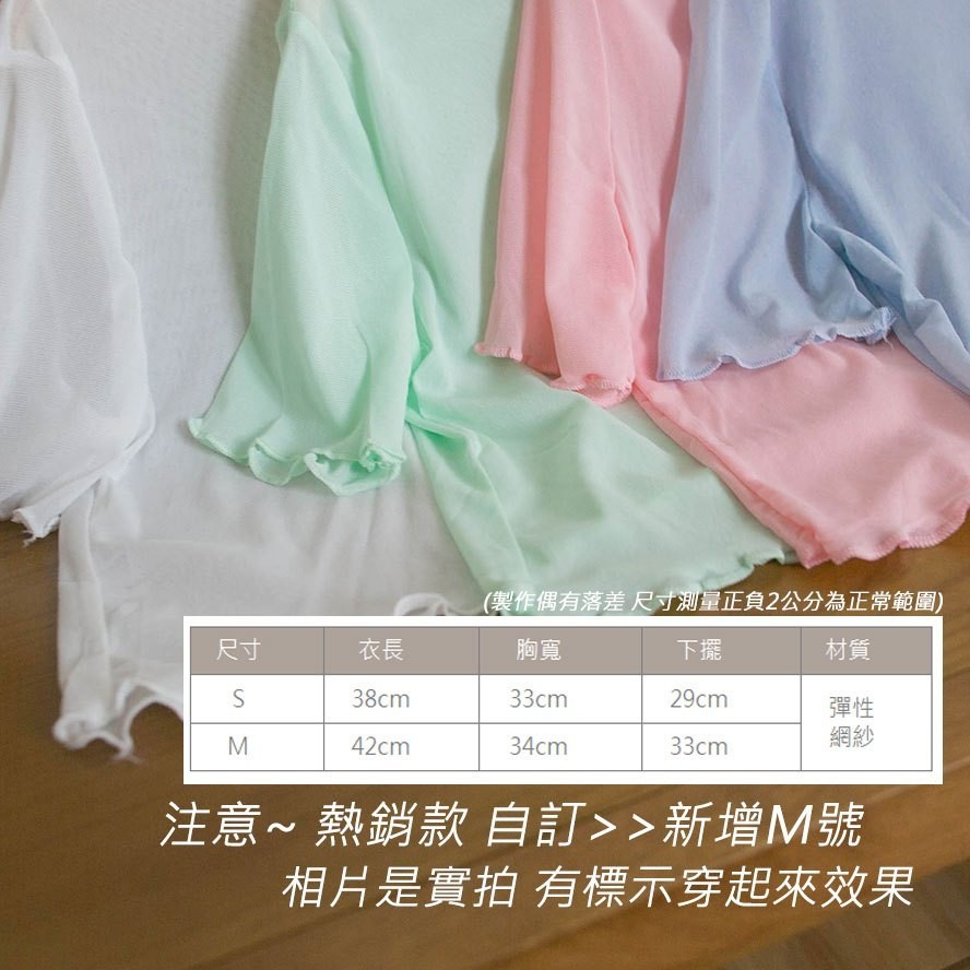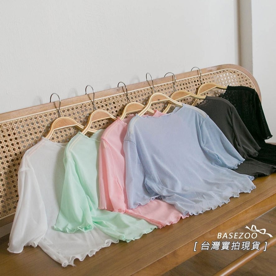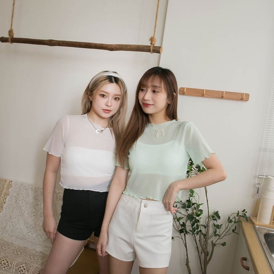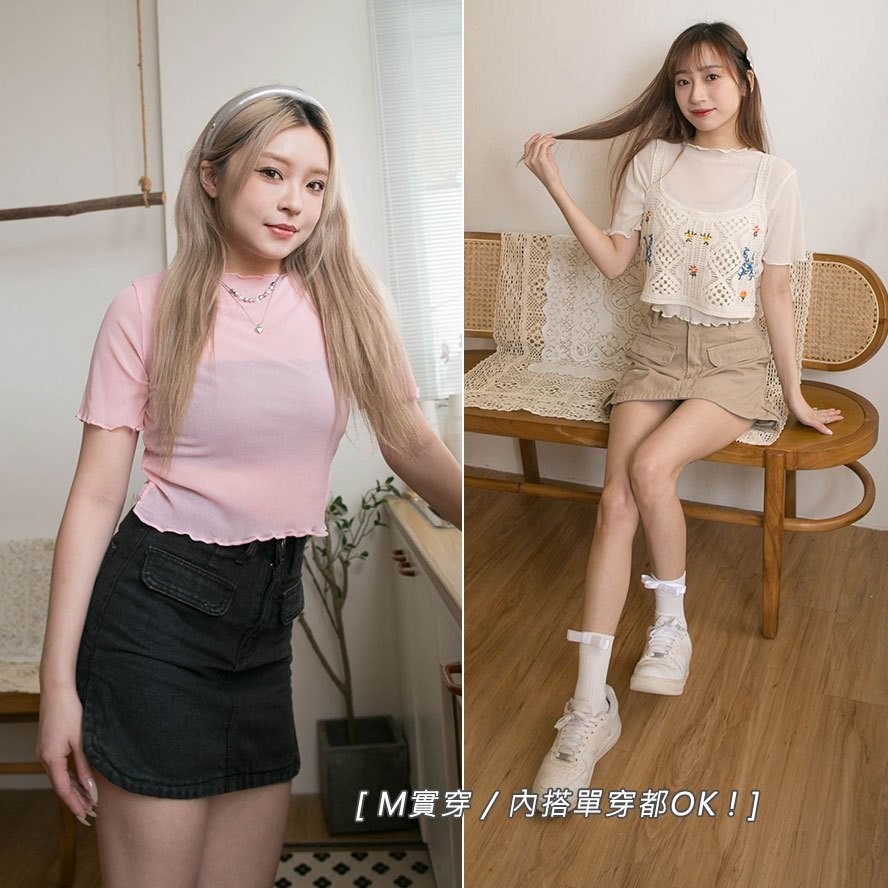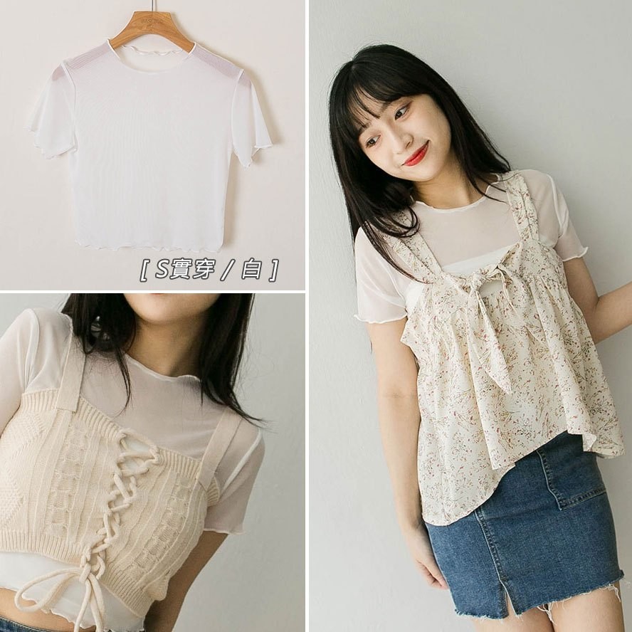現貨供應 實拍-木耳捲邊 透膚網紗短版上衣【390902】內搭單穿都好看~