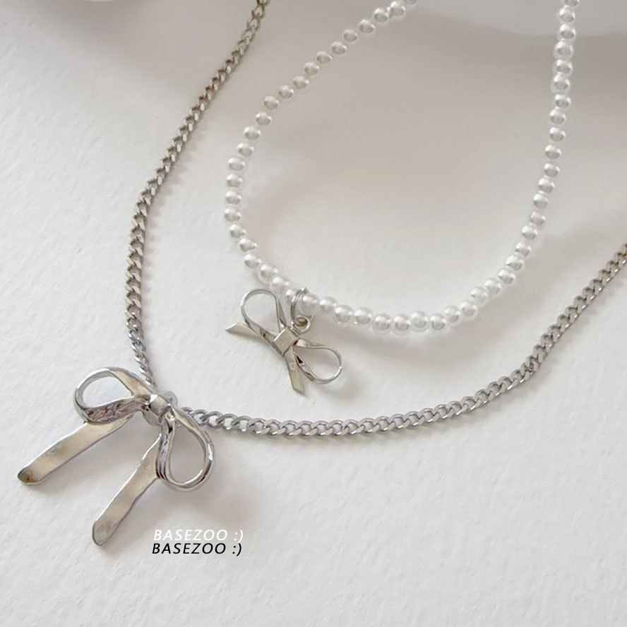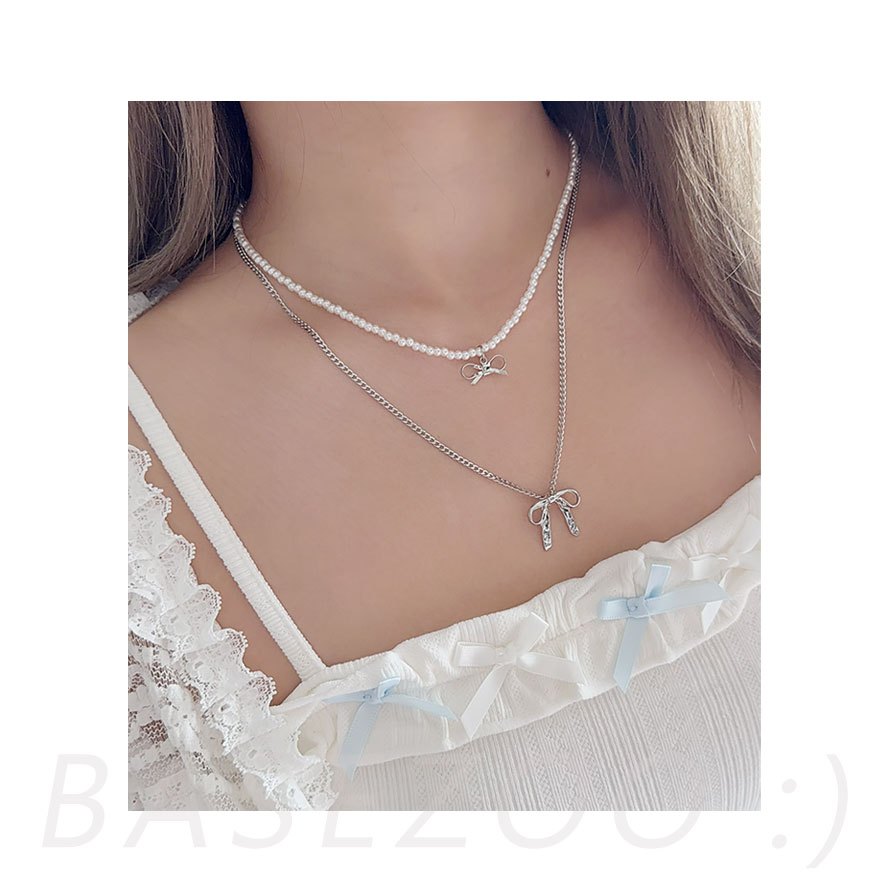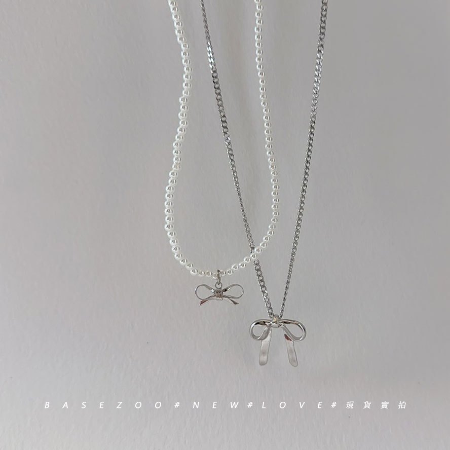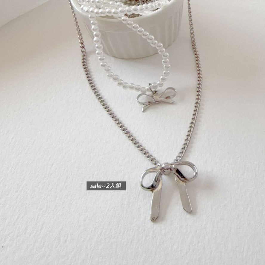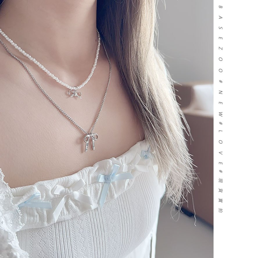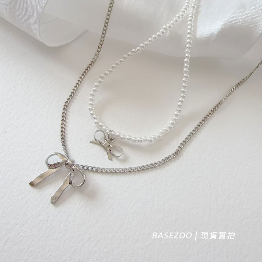 現貨實拍-蝴蝶結珍珠項鍊 二入組 甜酷風 疊搭項鍊 女 蝴蝶結頸鍊 少女心珍珠鎖骨鍊氣質百搭飾品【611043】